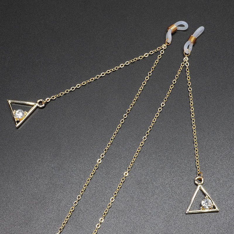 Металлическая нескользящая цепочка золотого цвета, с подвеской в виде треугольника со стразами, для очков и масок GL384