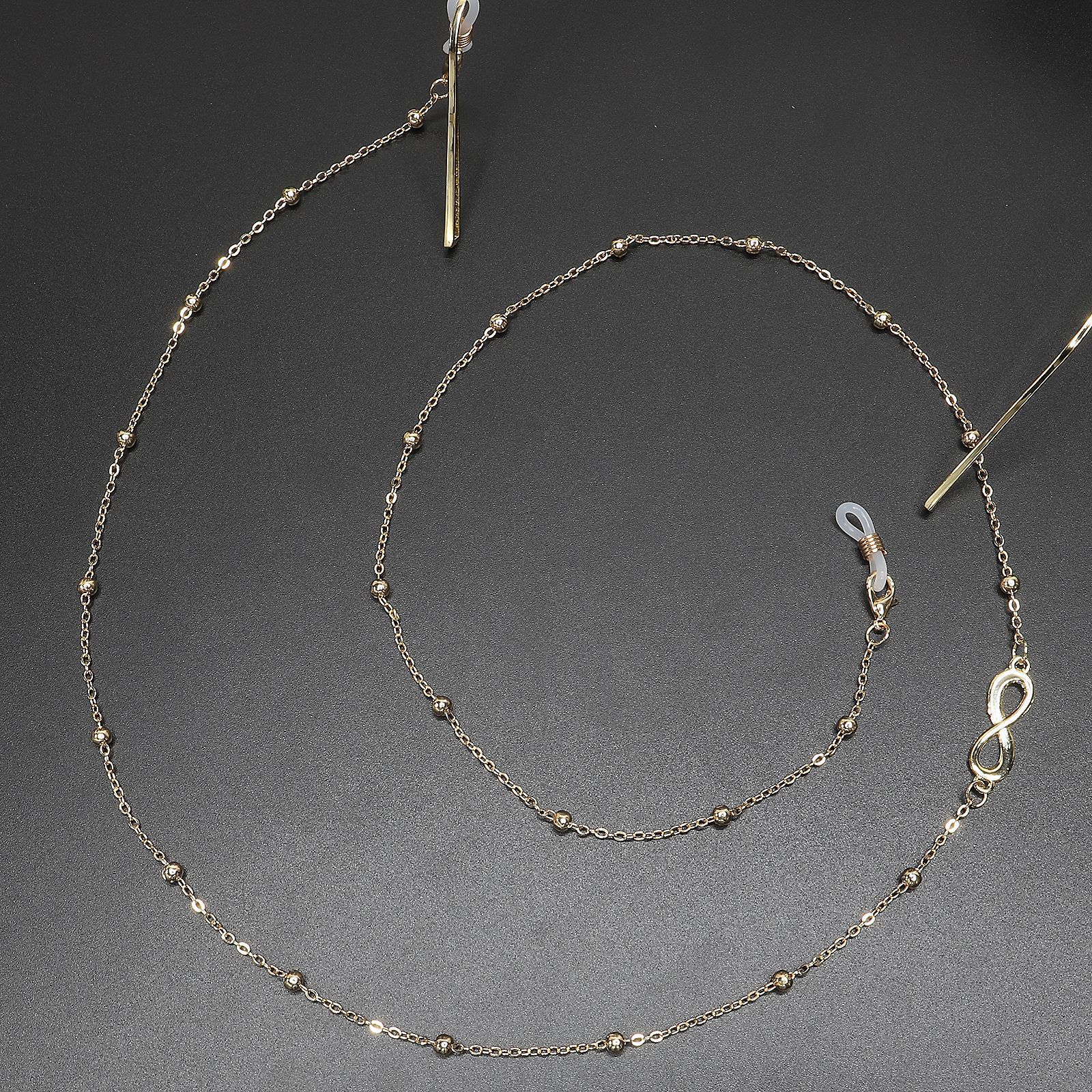 Металлическая нескользящая цепочка золотого цвета, с подвеской в виде цифры 8, для очков и масок GL387