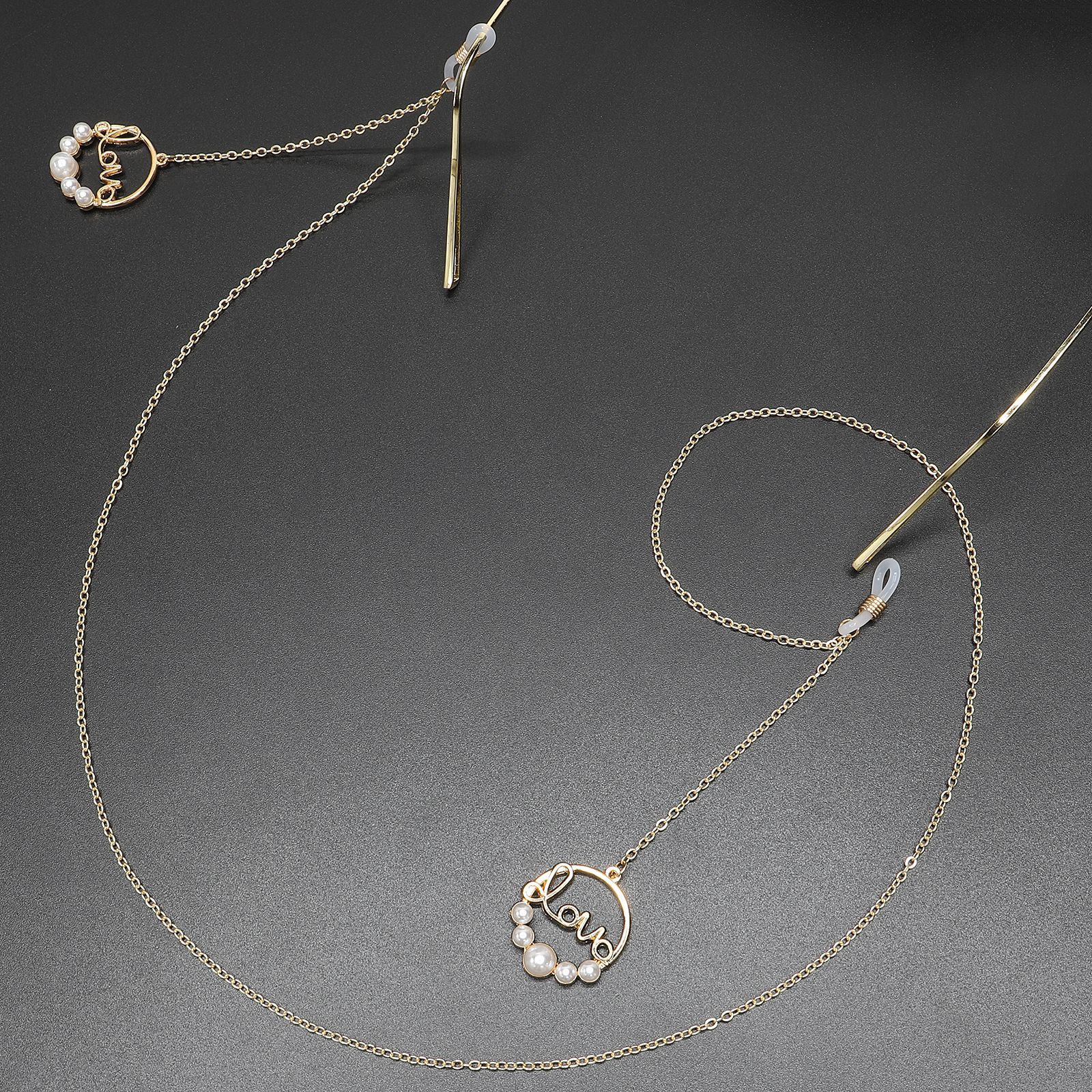 Металлическая нескользящая цепочка золотого цвета, с подвеской слова LOVE, для очков и масок GL390