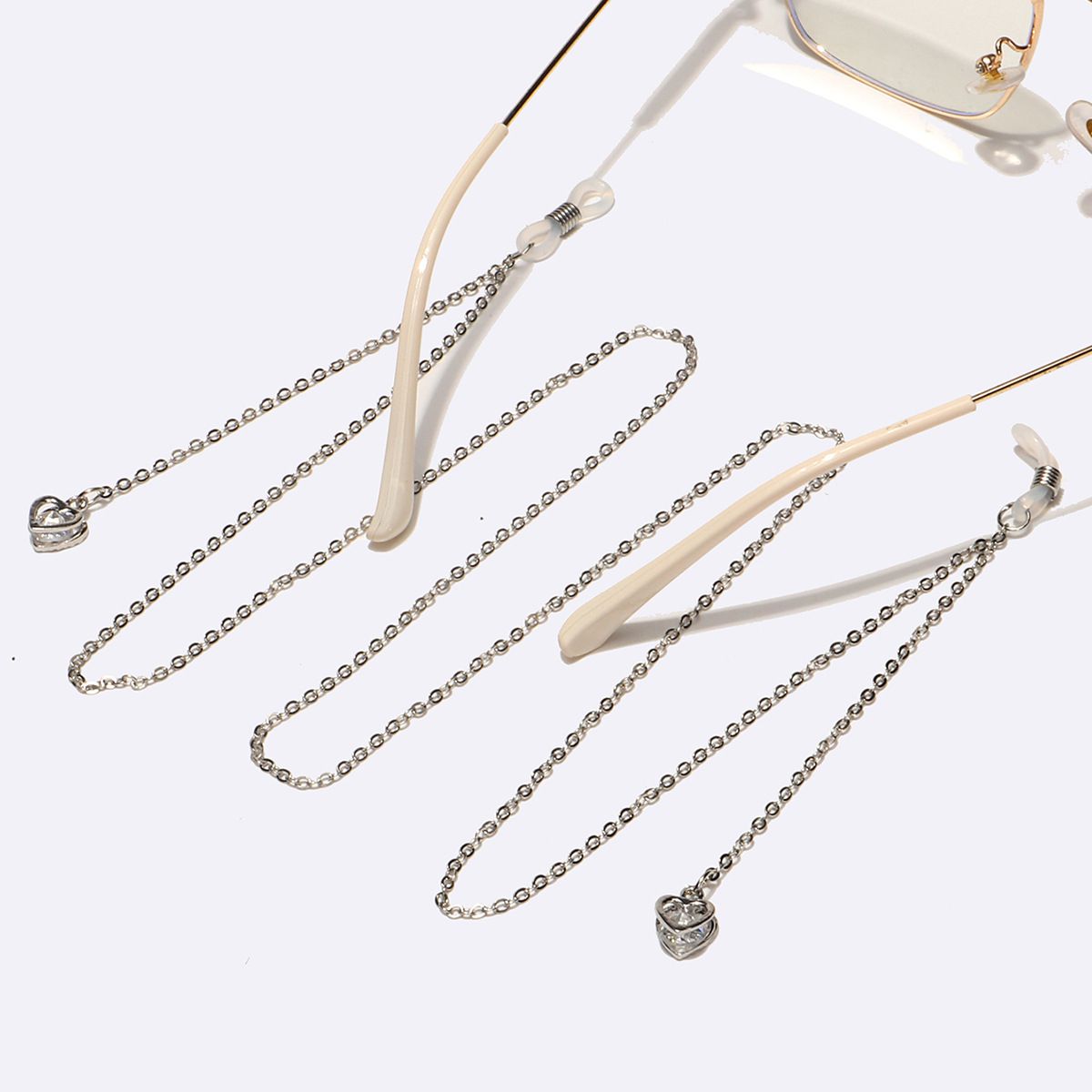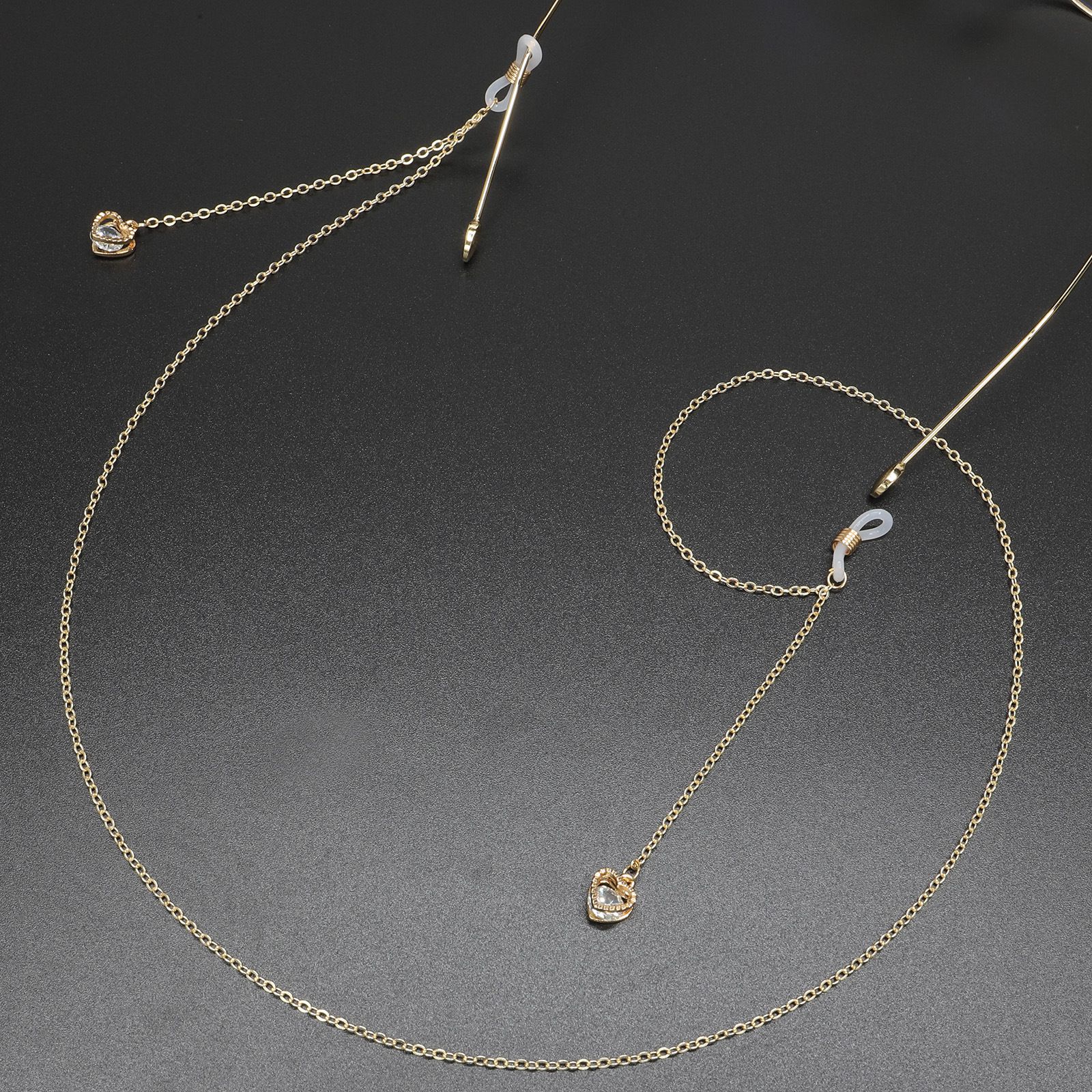 Металлическая нескользящая цепочка, с подвеской сердце с цирконием, для очков и масок GL396