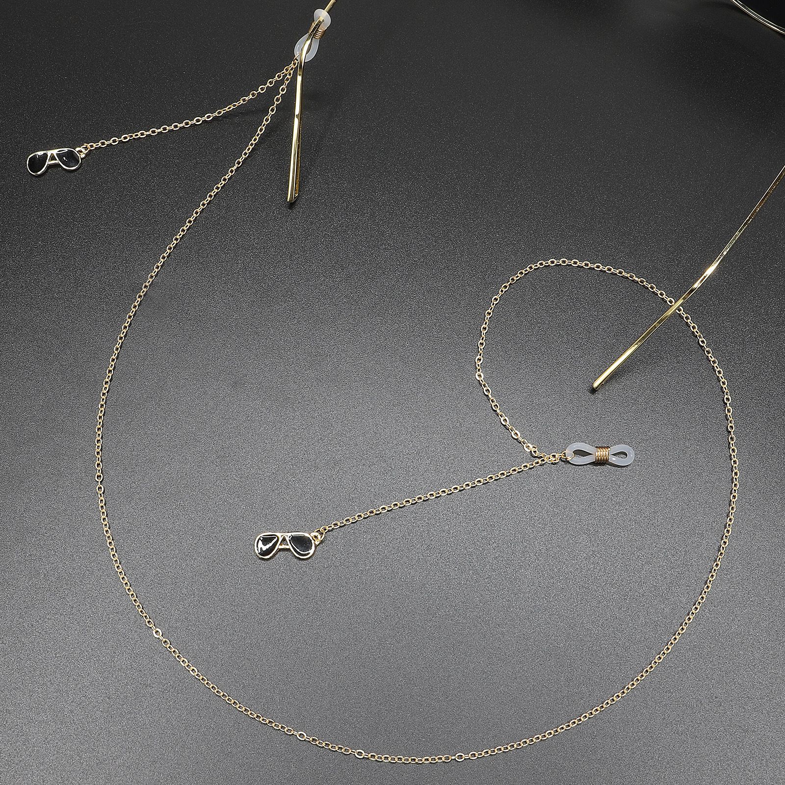 Металлическая нескользящая цепочка золотого цвета, с подвеской черные очки, для очков и масок GL399
