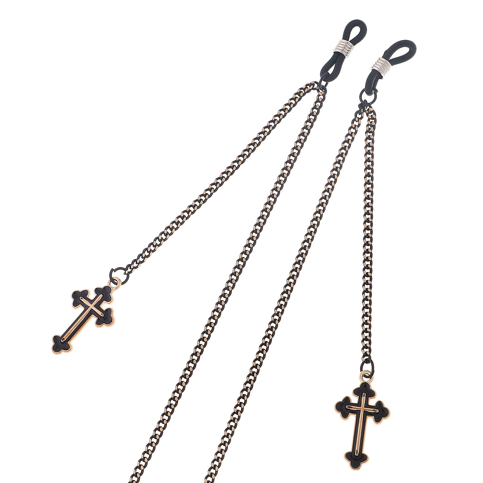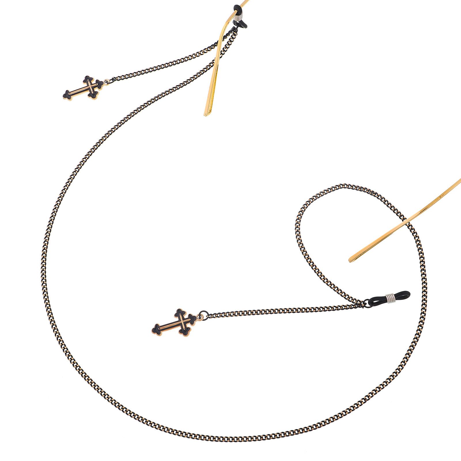 Металлическая нескользящая цепочка черного цвета, с подвеской в виде креста, для очков и масок GL404