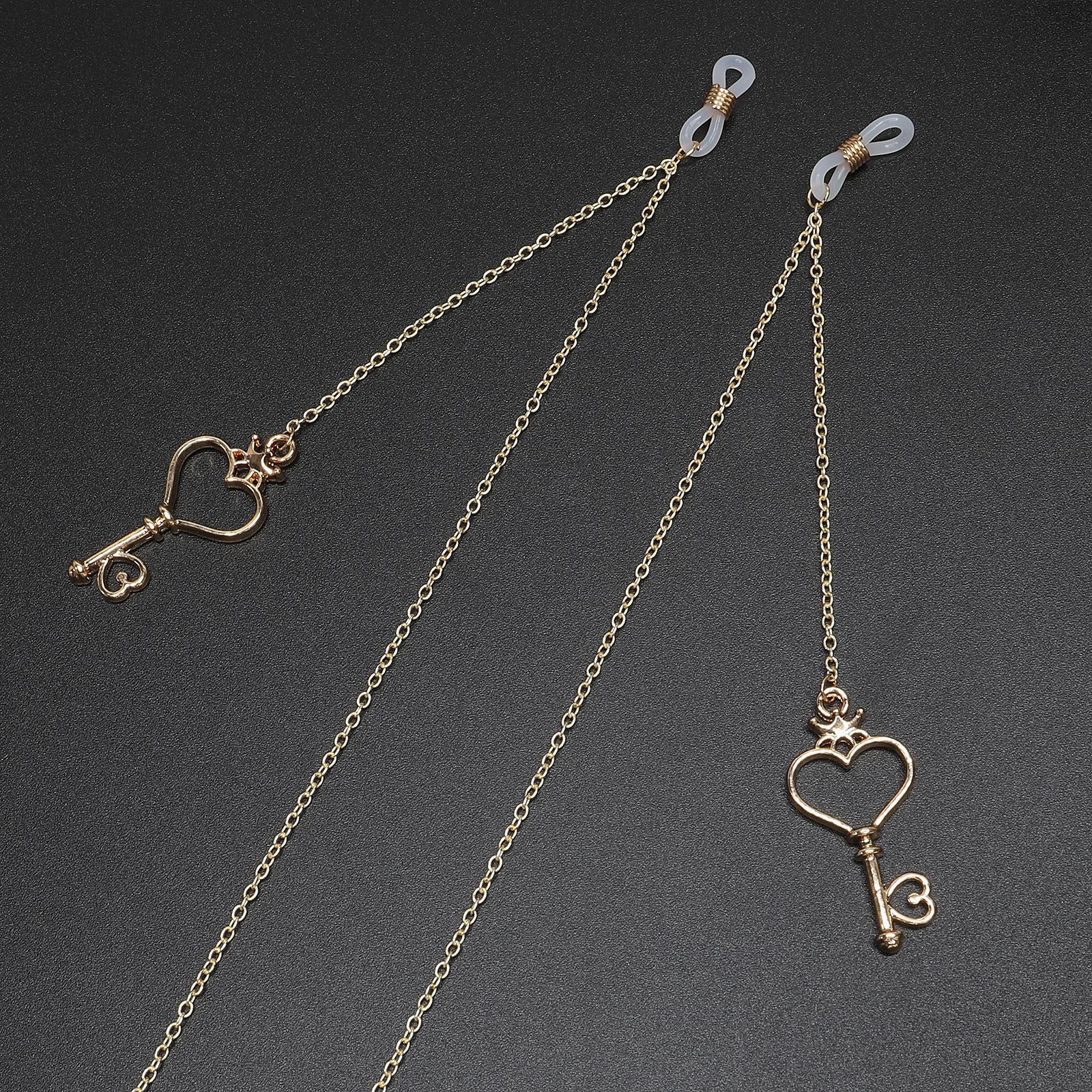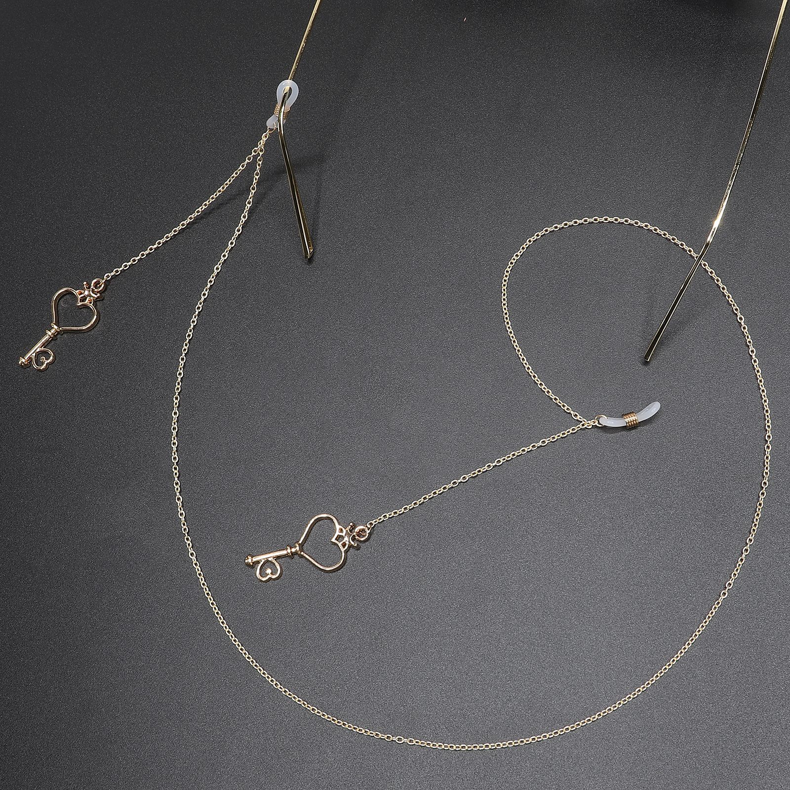 Металлическая нескользящая цепочка золотого цвета, с подвеской в виде ключа в форме сердца, для очков и масок GL408