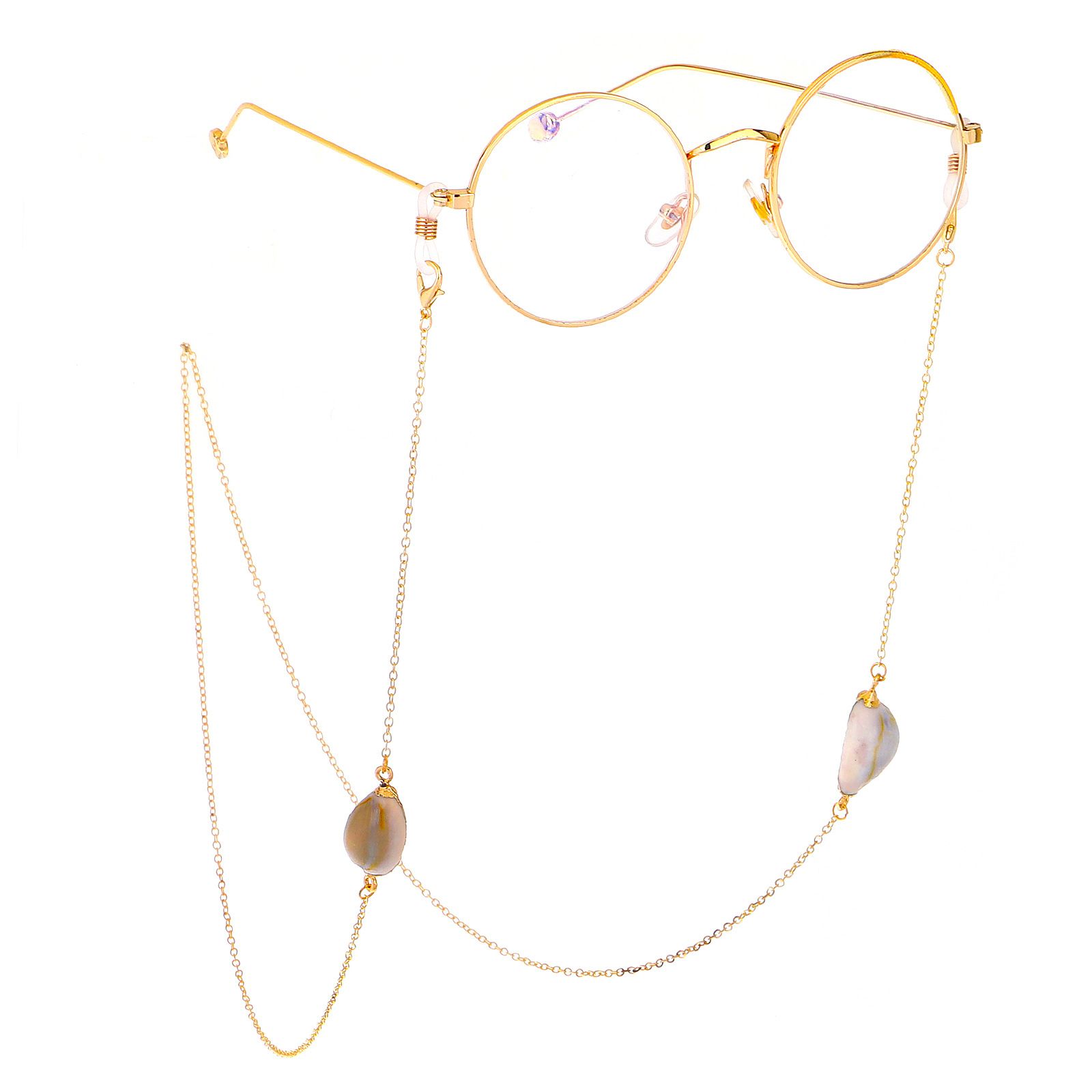 Металлическая нескользящая цепочка золотого цвета, с подвеской белая ракушка, для очков и масок GL434