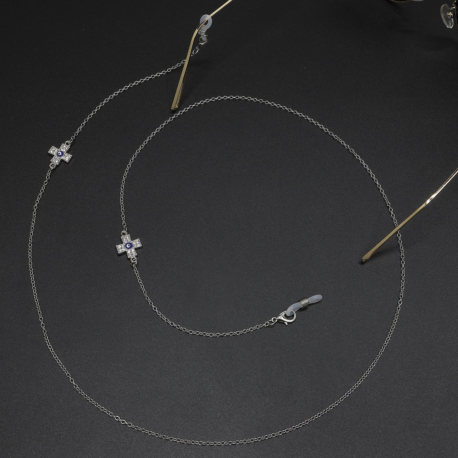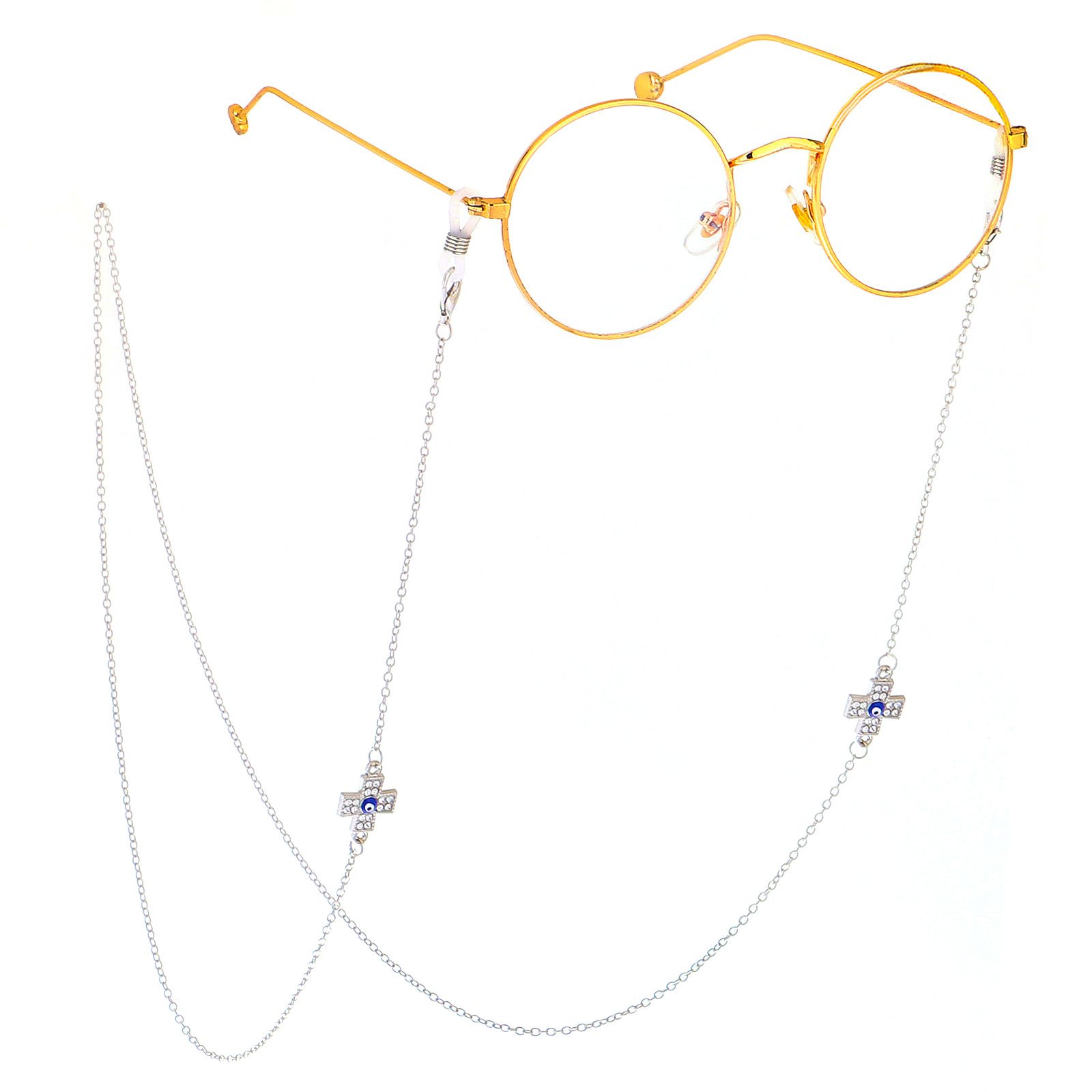 Металлическая нескользящая цепочка серебряного цвета, с крестом со стразами, для очков и масок GL482