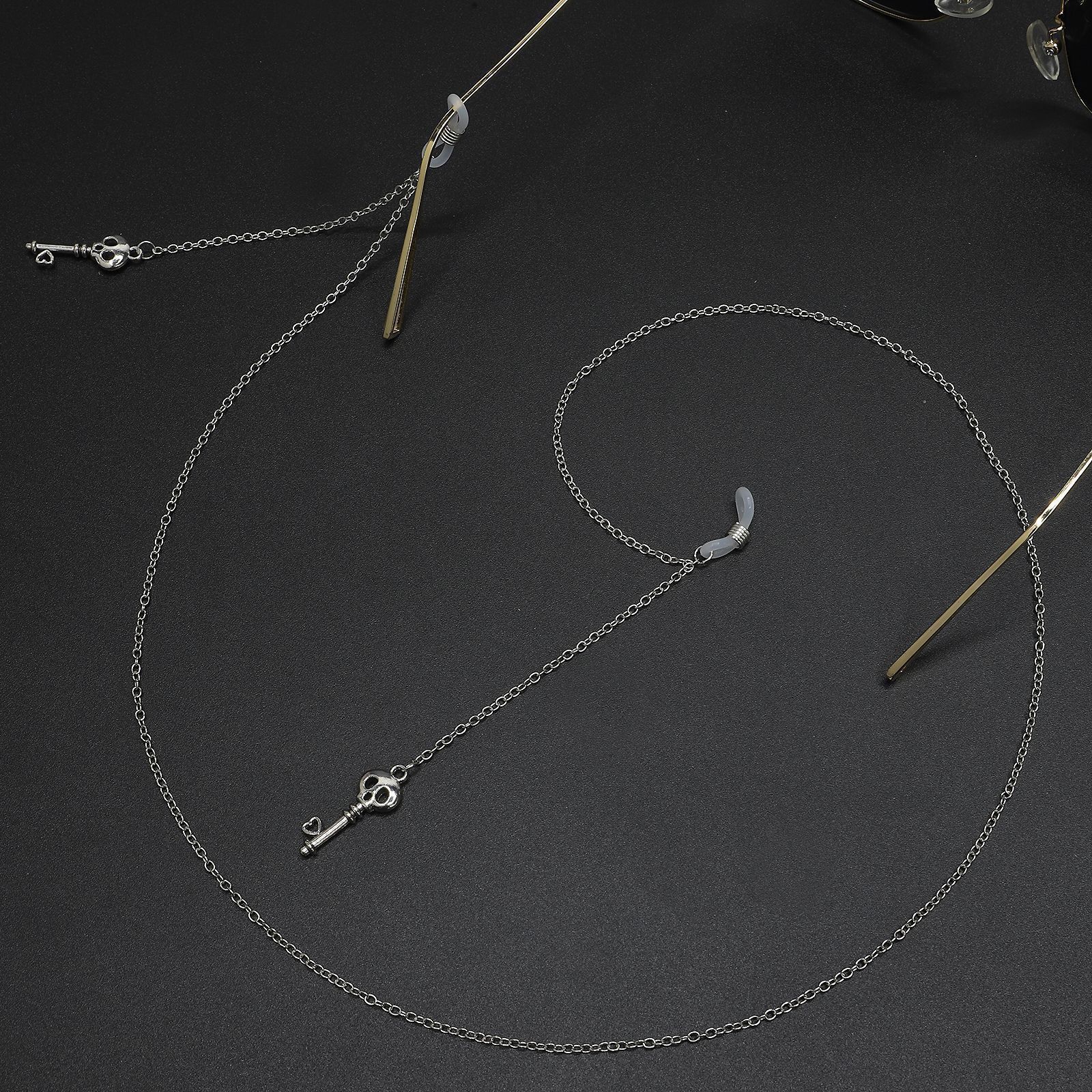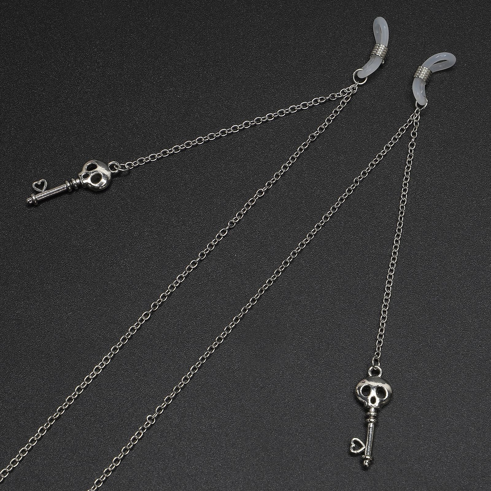 Металлическая нескользящая цепочка серебряного цвета, с подвеской ключ в виде черепа, для очков и масок GL484