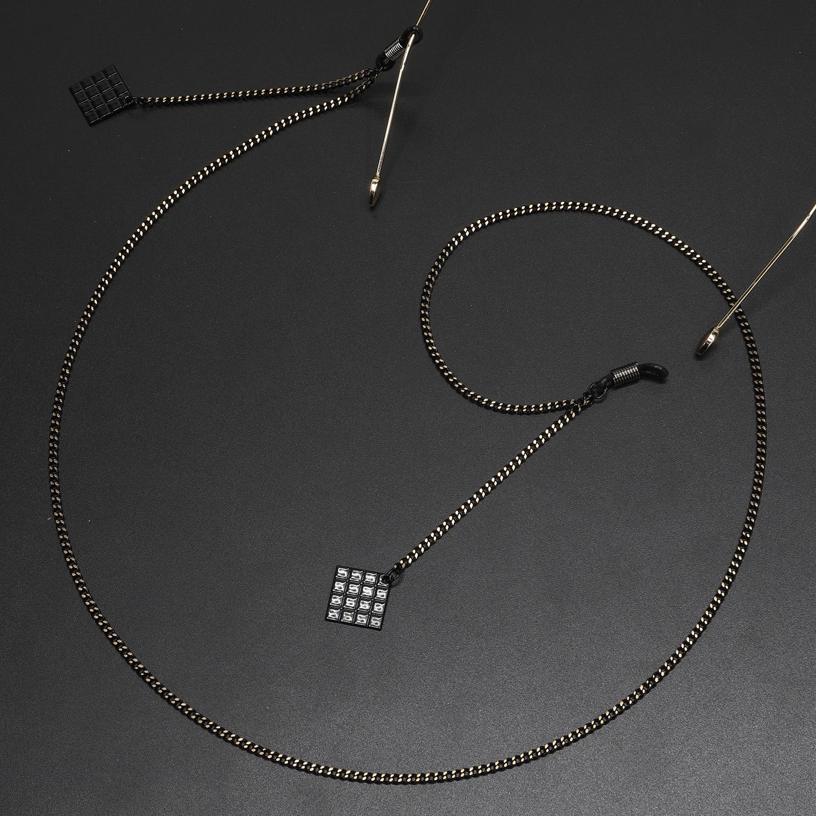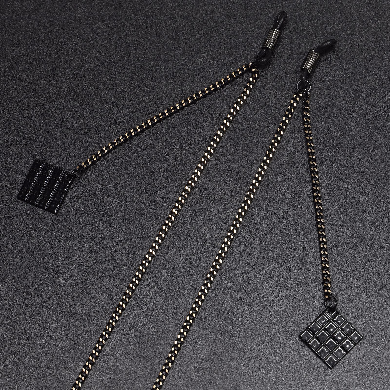 Металлическая нескользящая цепочка черного цвета, с подвеской черный квадрат, для очков и масок GL489