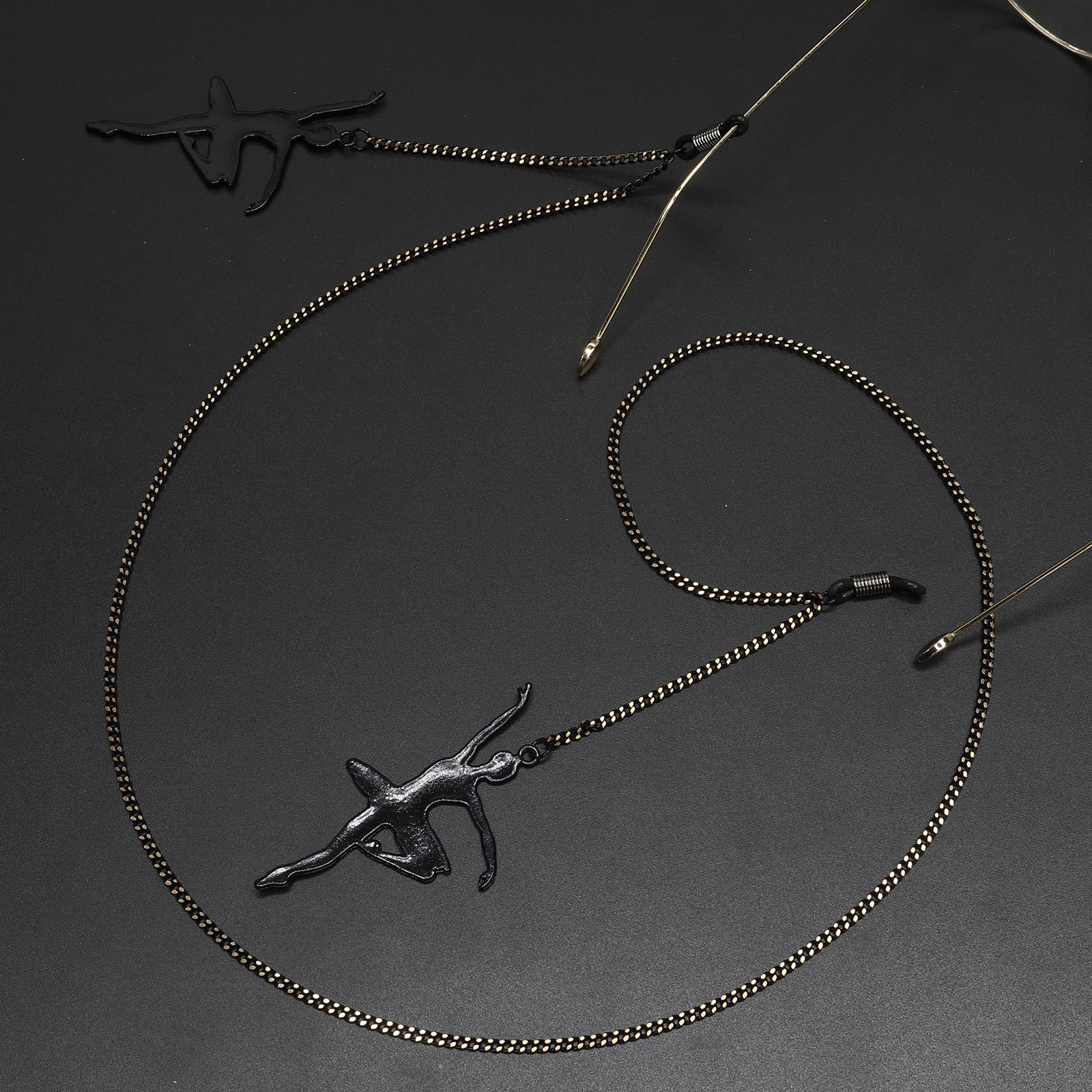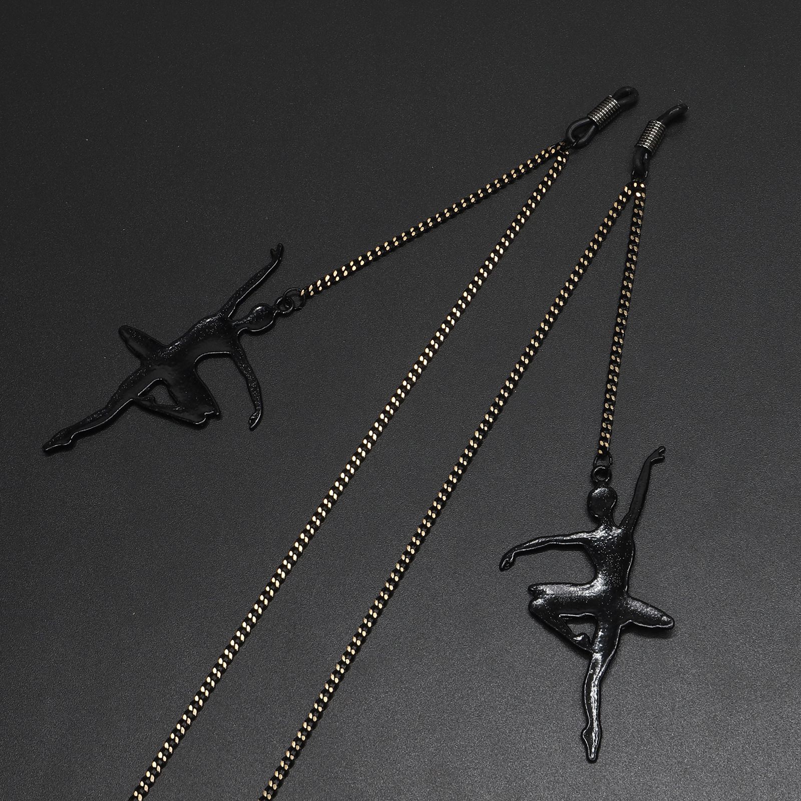 Металлическая нескользящая цепочка черного цвета, с подвеской в виде балерины, для очков и масок GL495