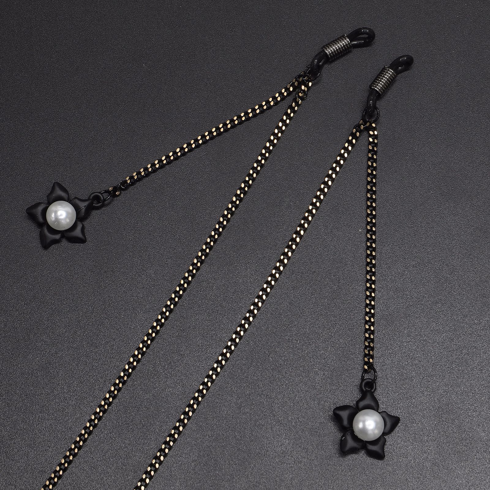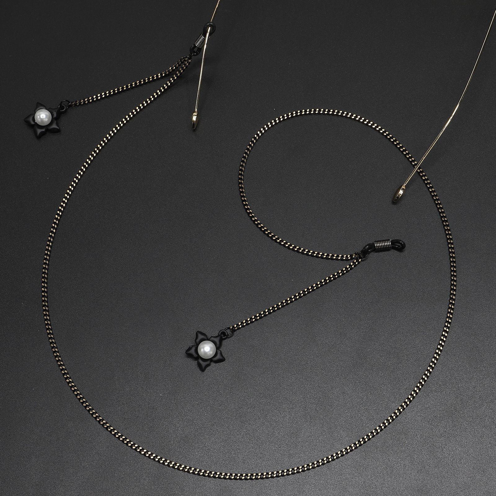 Металлическая нескользящая цепочка черного цвета, с подвеской черная звезда с жемчугом, для очков и масок GL499
