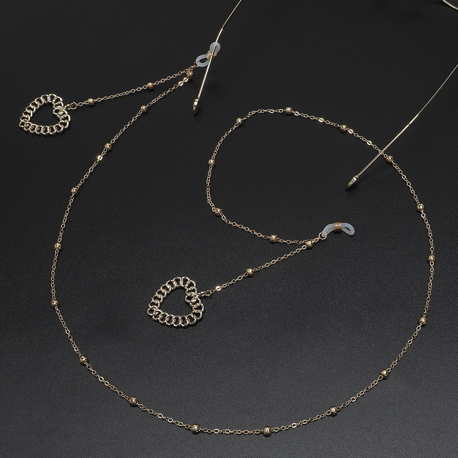 Металлическая нескользящая цепочка золотого цвета, с подвеской сердце и бусинами, для очков и масок GL536