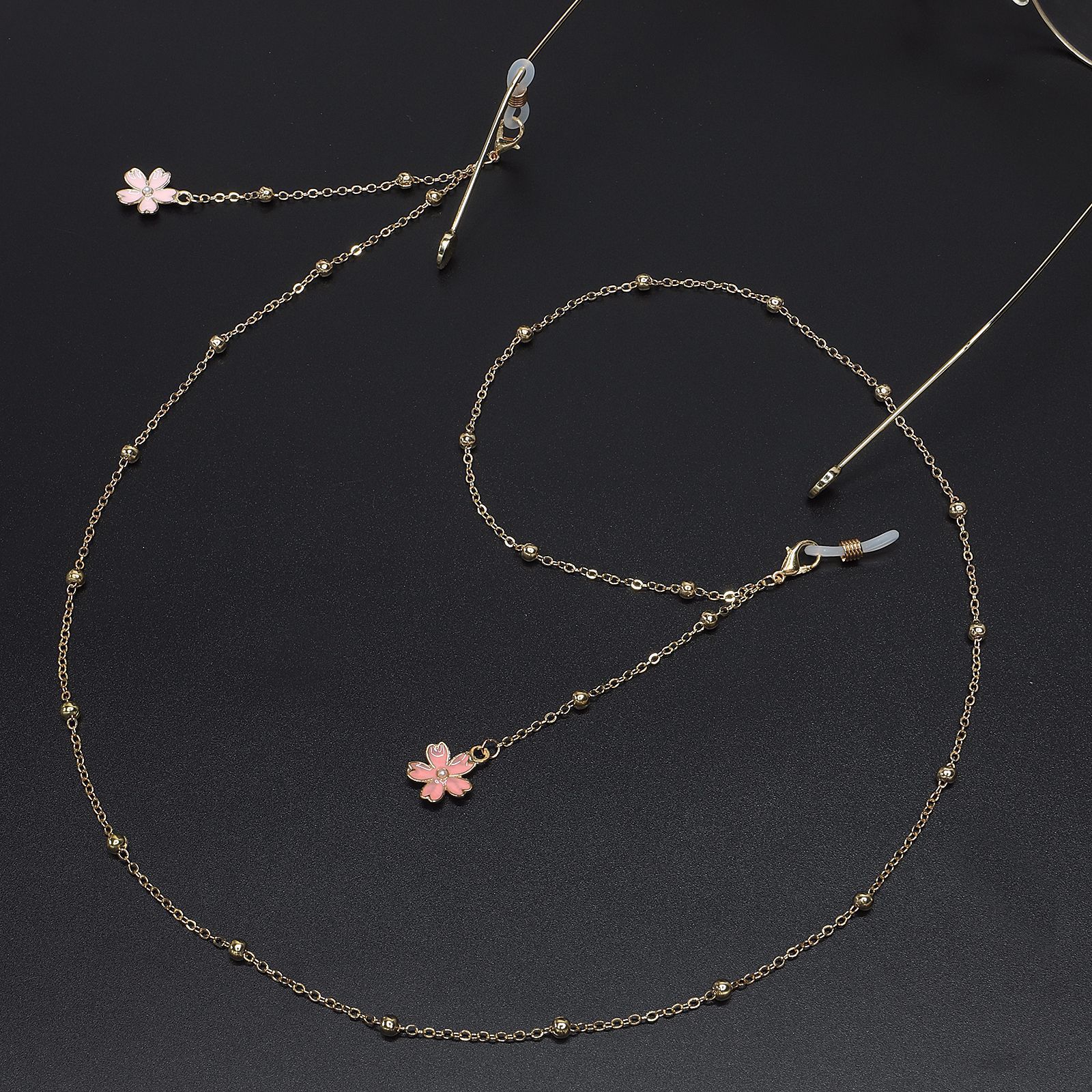 Металлическая нескользящая цепочка золотого цвета, с подвеской розовый цветок вишни, для очков и масок GL538