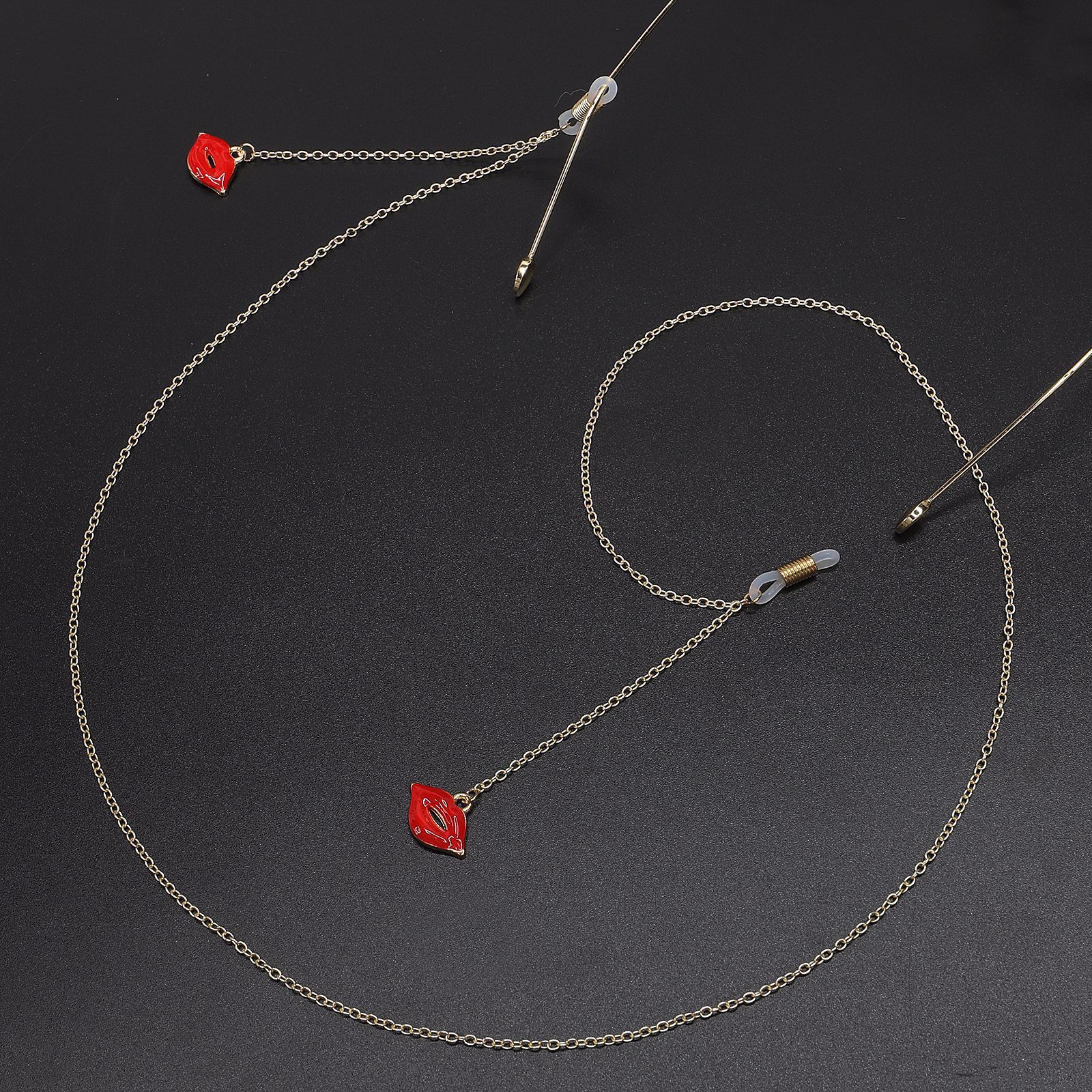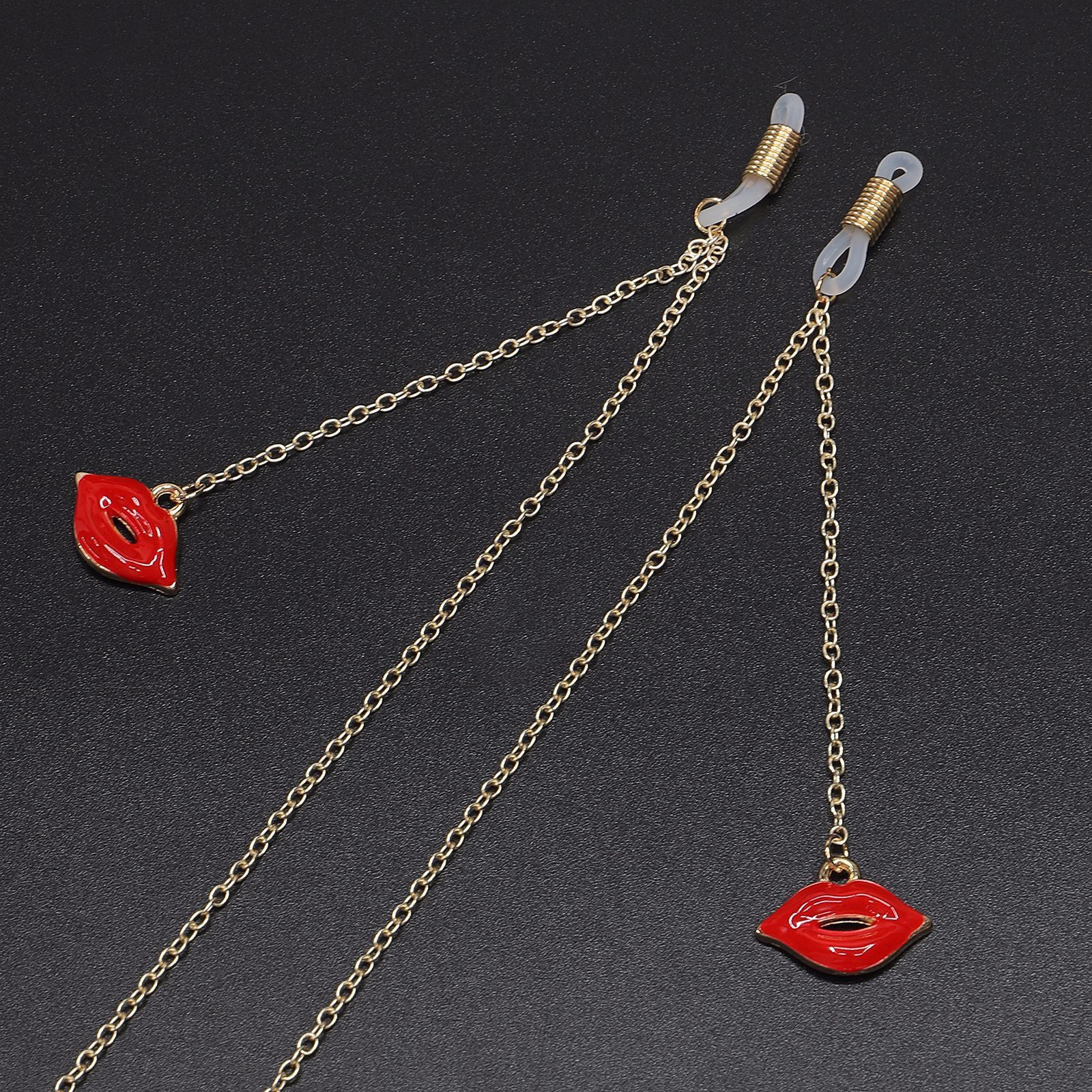 Металлическая нескользящая цепочка золотого цвета, с подвеской в виде красных губ, для очков и масок GL541