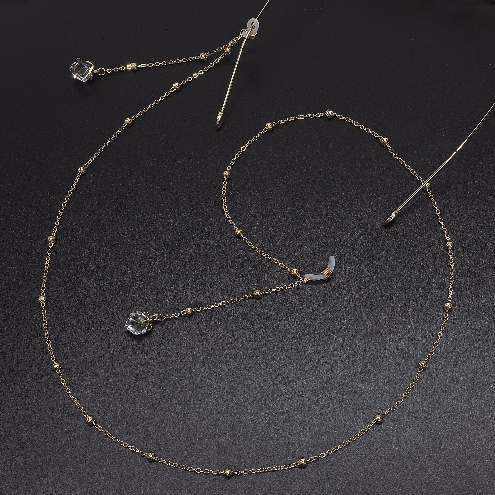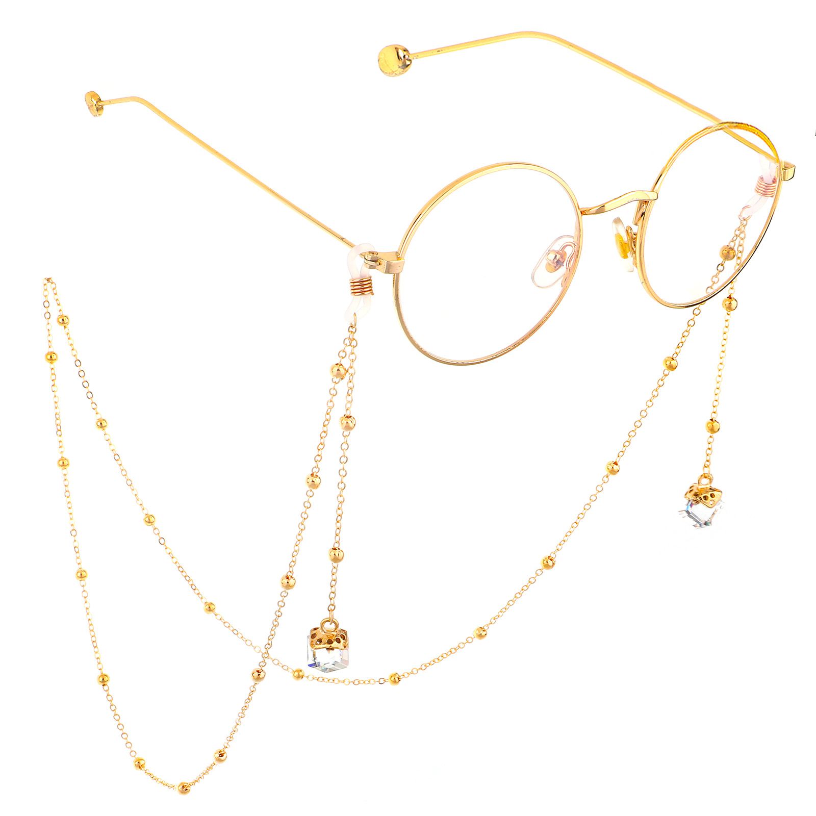 Металлическая нескользящая цепочка золотого цвета, с подвеской кристалл и бусинами, для очков и масок GL550