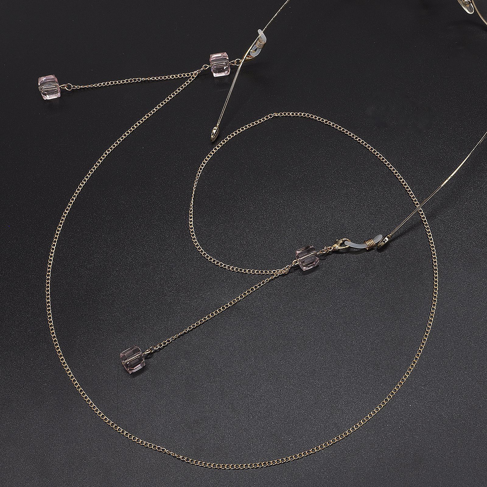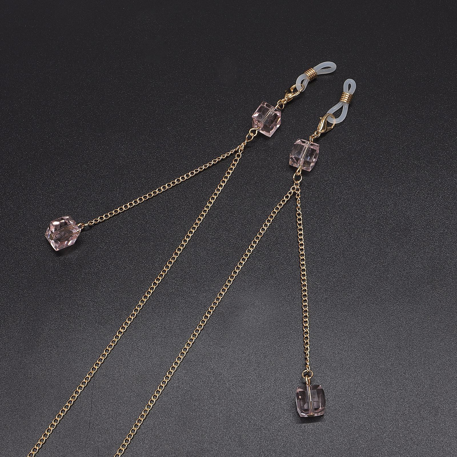 Металлическая нескользящая цепочка золотого цвета, с подвеской розовый кристалл, для очков и масок GL551