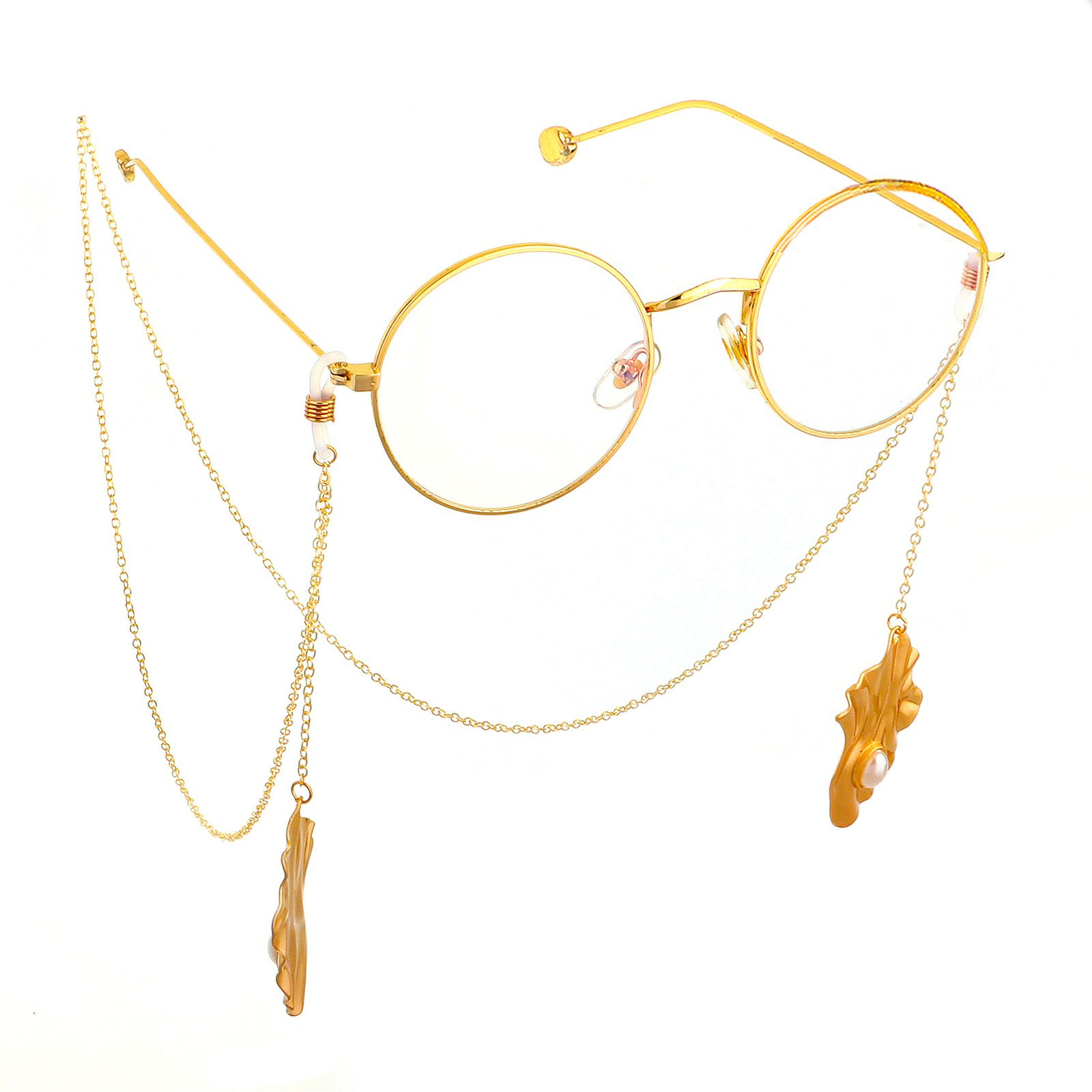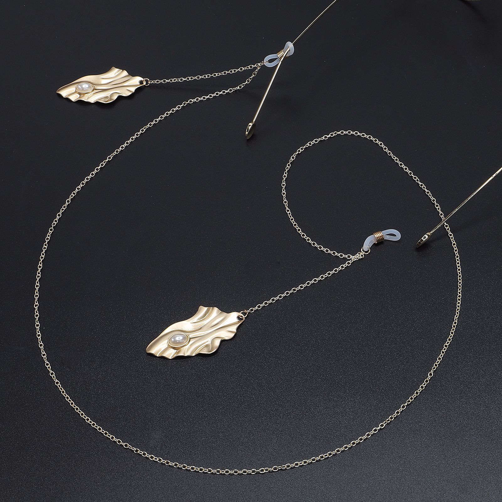 Металлическая нескользящая цепочка золотого цвета, с подвеской изогнутая форма и жемчугом, для очков и масок GL555