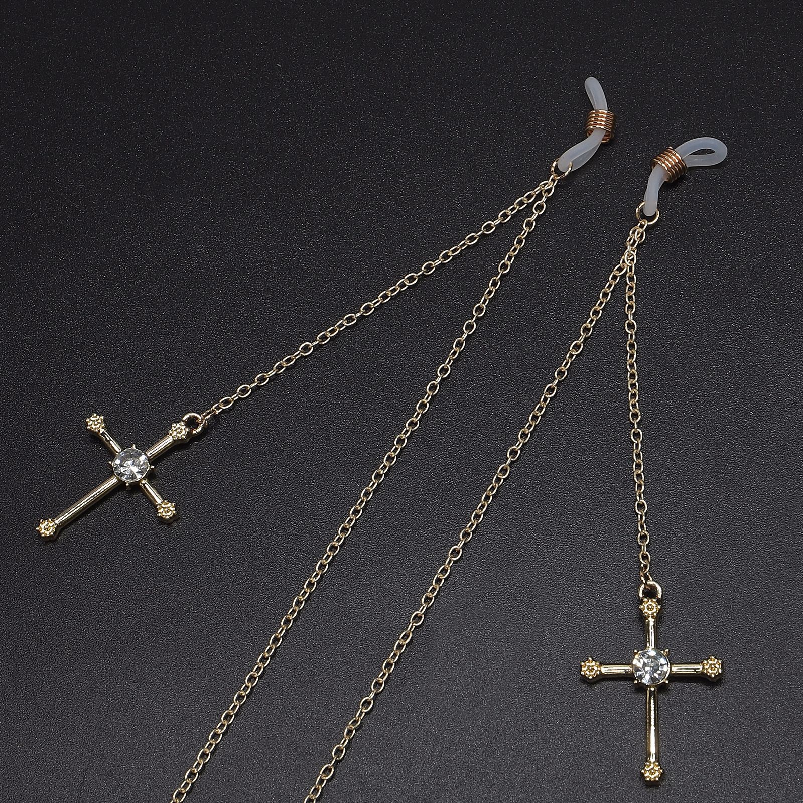 Металлическая нескользящая цепочка, с подвеской в виде креста со стразами, для очков и масок GL561