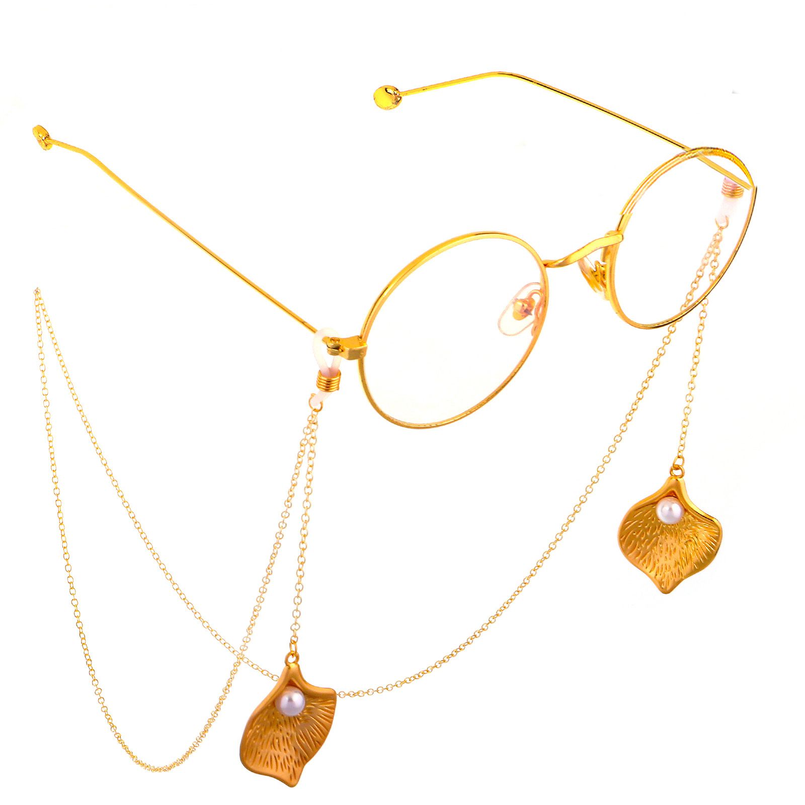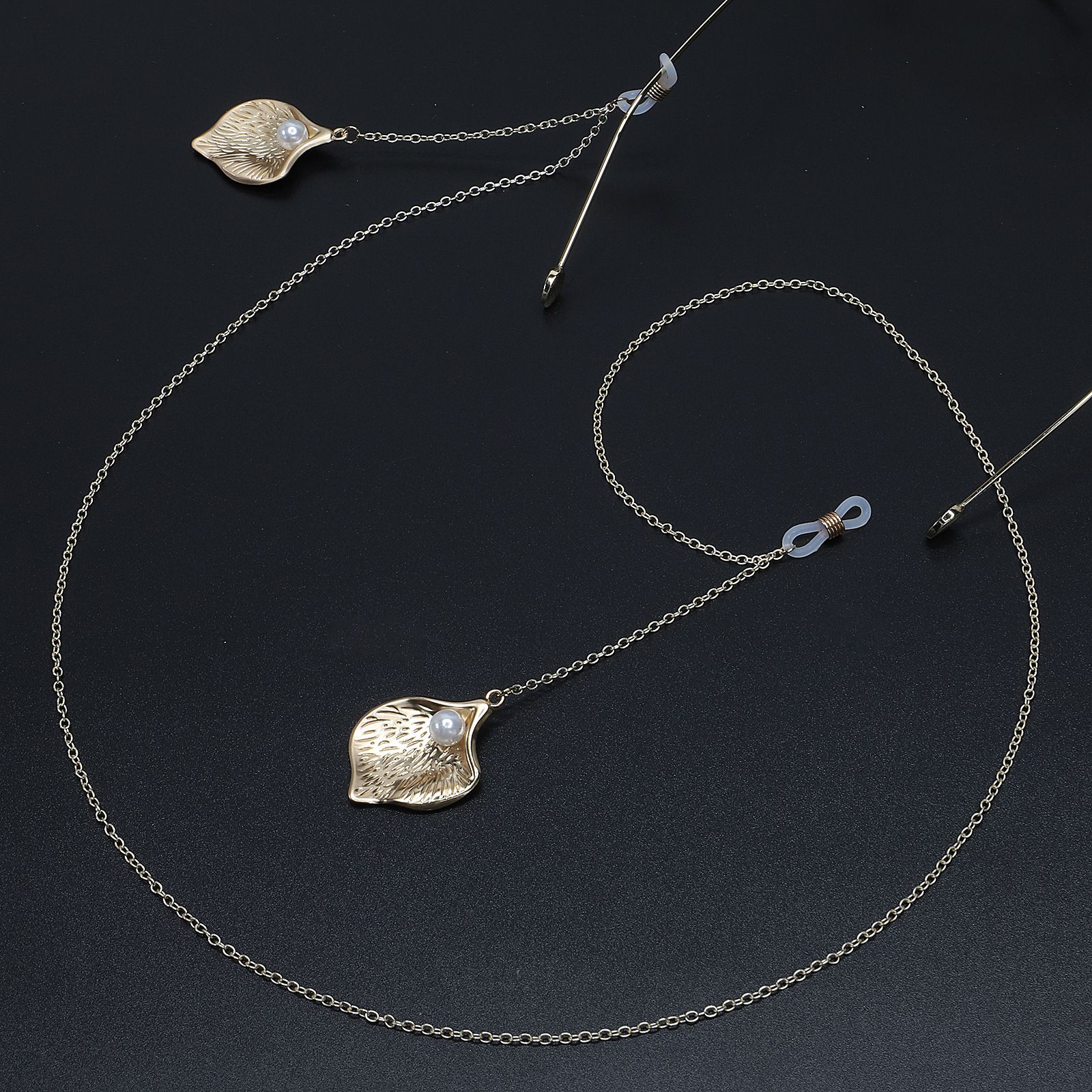 Металлическая нескользящая цепочка золотого цвета, с подвеской изогнутая форма и жемчугом, для очков и масок GL571