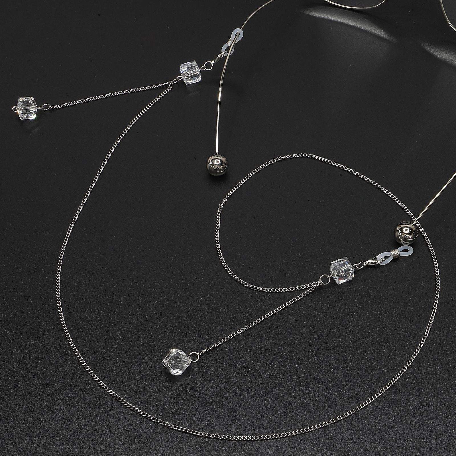 Металлическая нескользящая цепочка черного цвета, с подвеской прозрачный кристалл, для очков и масок GL586