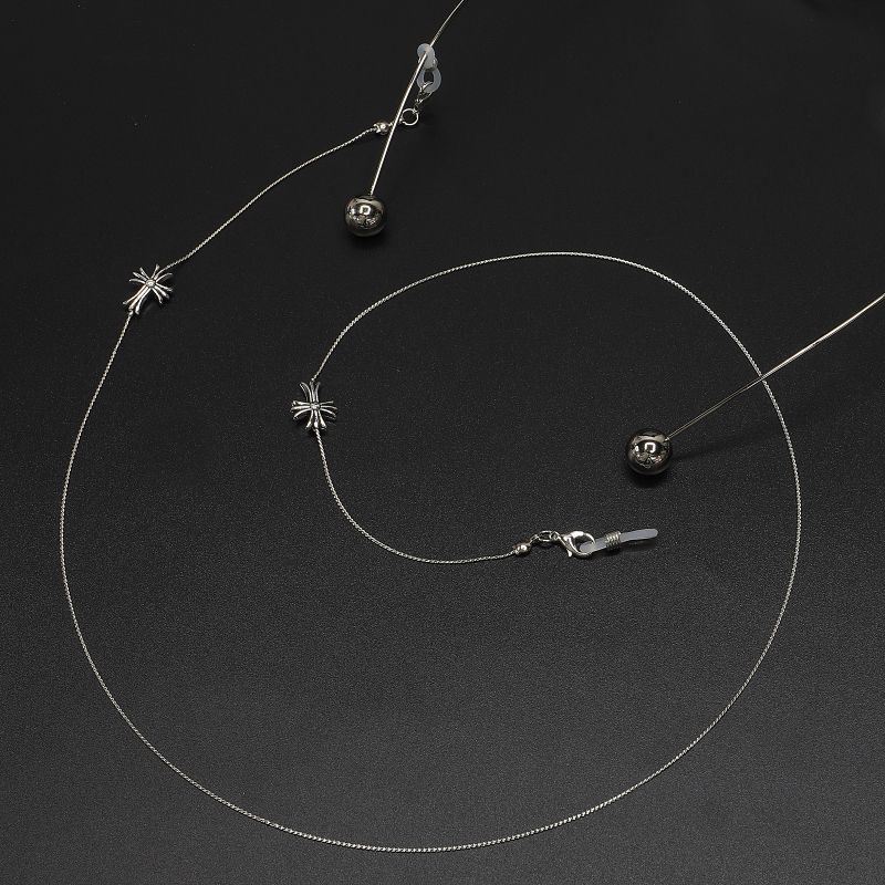 Металлическая нескользящая цепочка серебряного цвета, c крестом, для очков и масок GL587