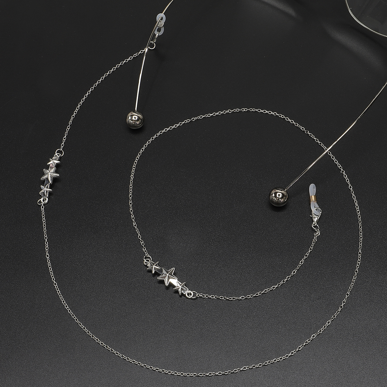 Металлическая нескользящая цепочка серебряного цвета, с подвеской в виде 5 звезд, для очков и масок GL588