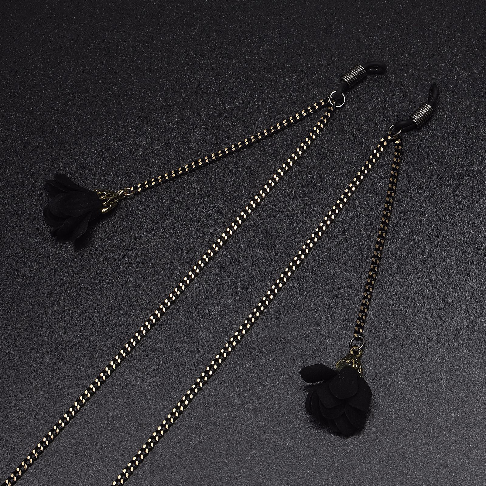 Металлическая нескользящая цепочка черного цвета, с подвеской цветок из ткани, для очков и масок GL597