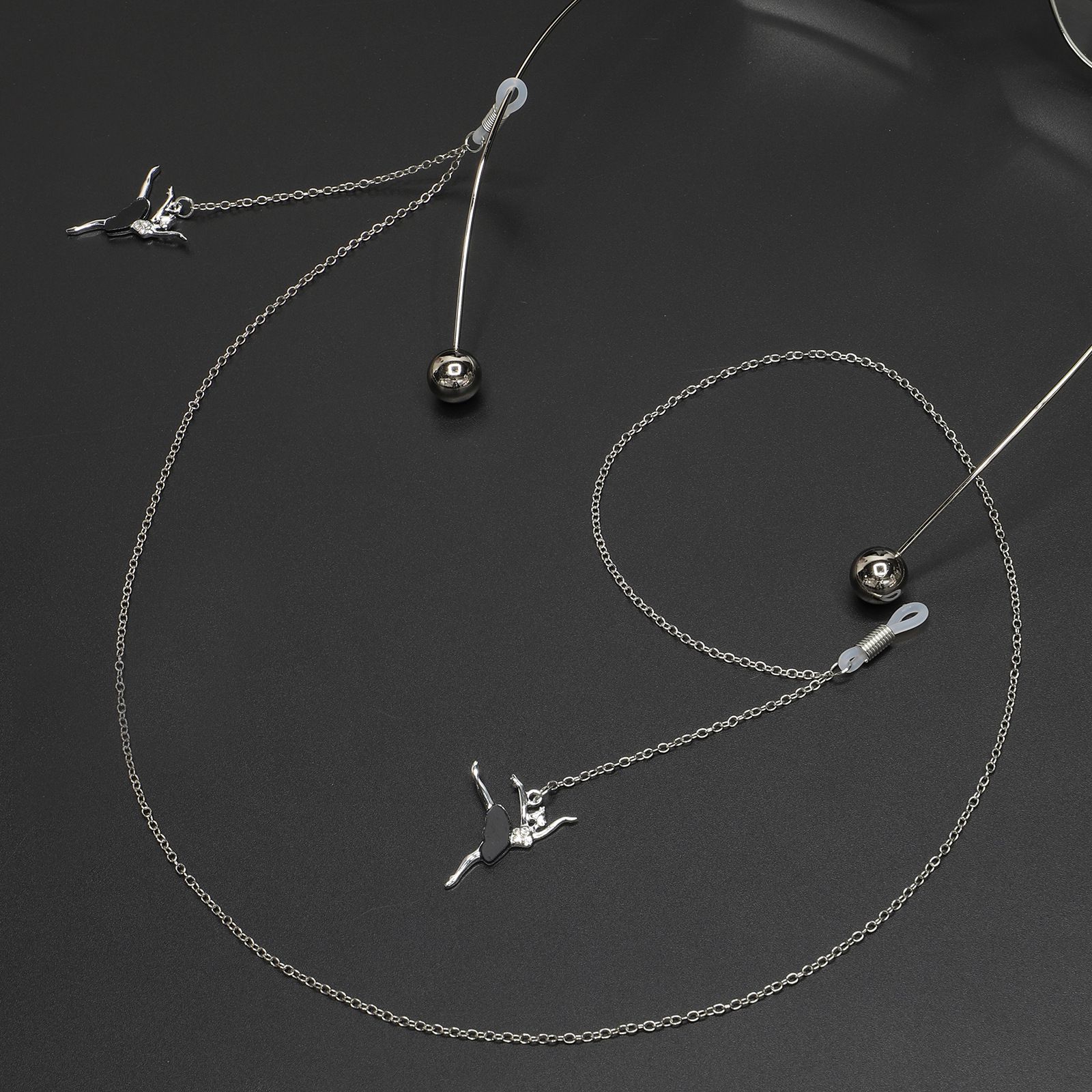 Металлическая нескользящая цепочка серебряного цвета, с подвеской ангел-танцор, для очков и масок GL613