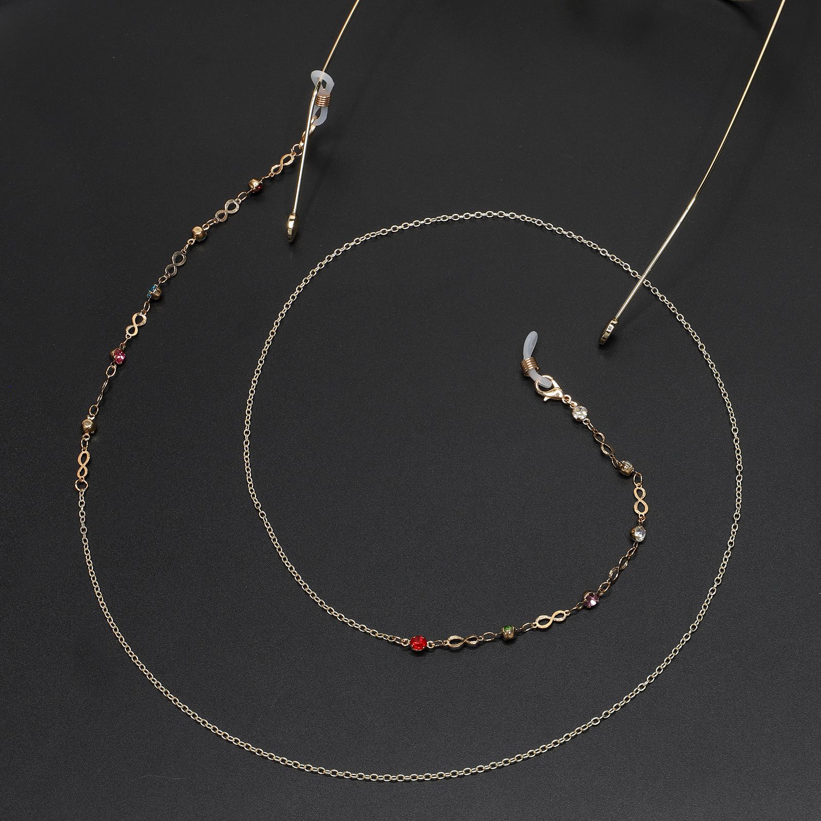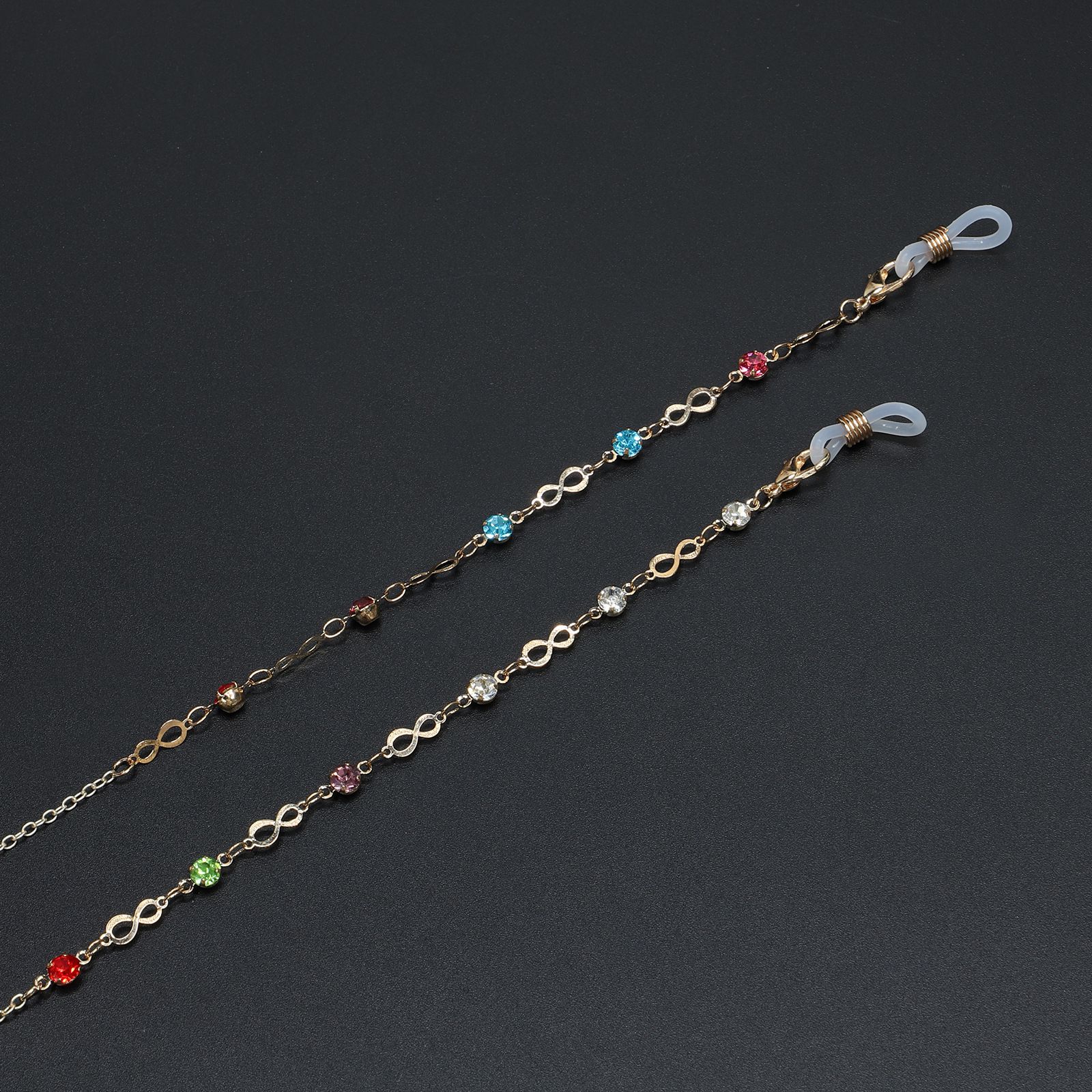 Металлическая нескользящая цепочка золотого цвета, с цветными стразами, для очков и масок GL630