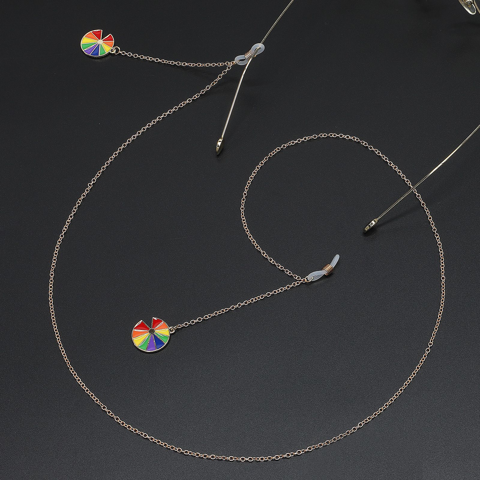 Металлическая нескользящая цепочка золотого цвета, с подвеской радуга, для очков и масок GL635