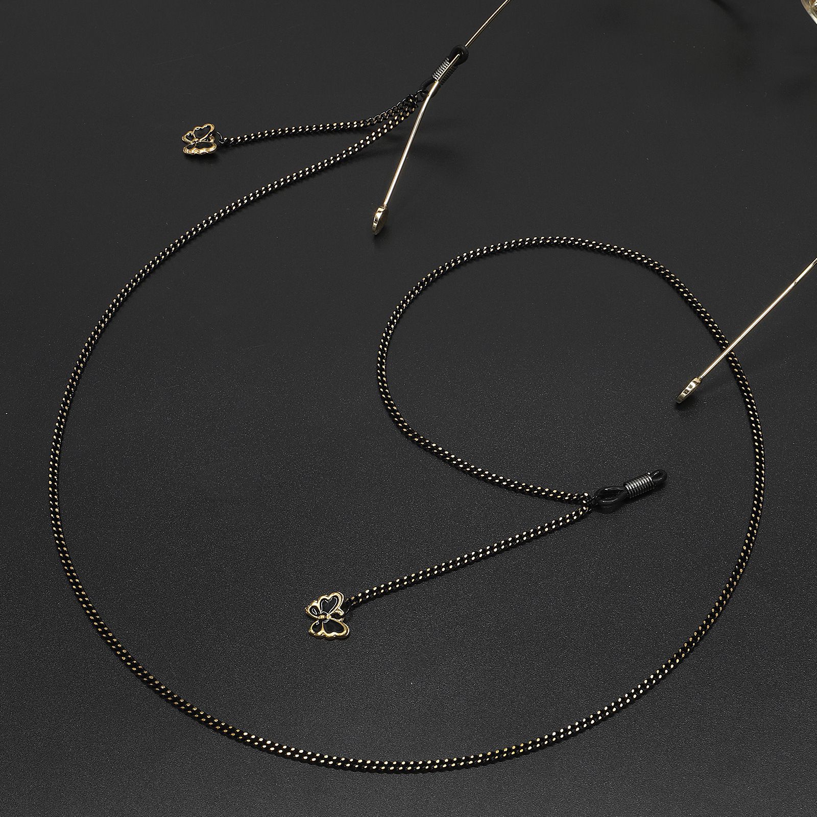 Металлическая нескользящая цепочка черного цвета, с подвеской бабочка, для очков и масок GL674