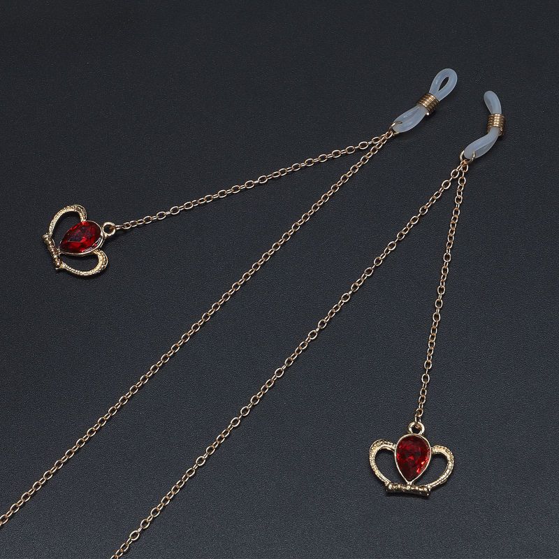 Металлическая нескользящая цепочка золотого цвета, с короной и кристаллом, для очков и масок GL704