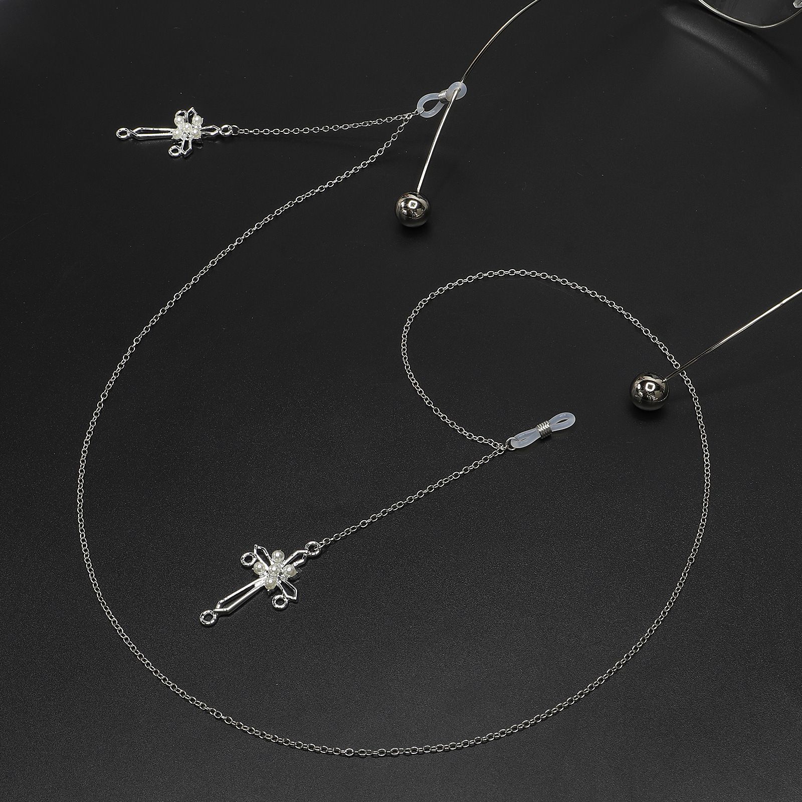 Металлическая нескользящая цепочка, с подвеской крестик с жемчугом, для очков и масок GL734