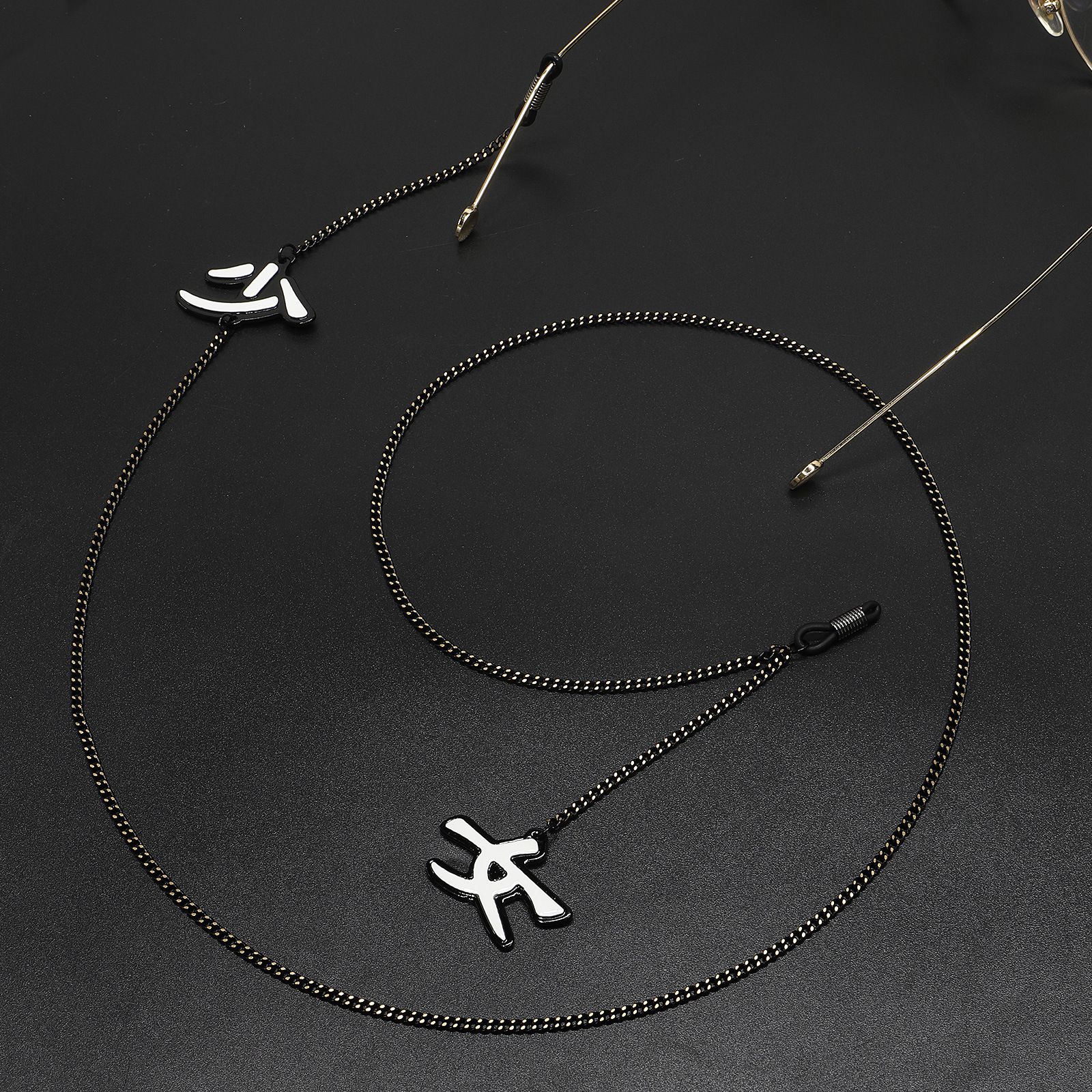Металлическая нескользящая цепочка черного цвета, с подвеской иероглифы, для очков и масок GL739