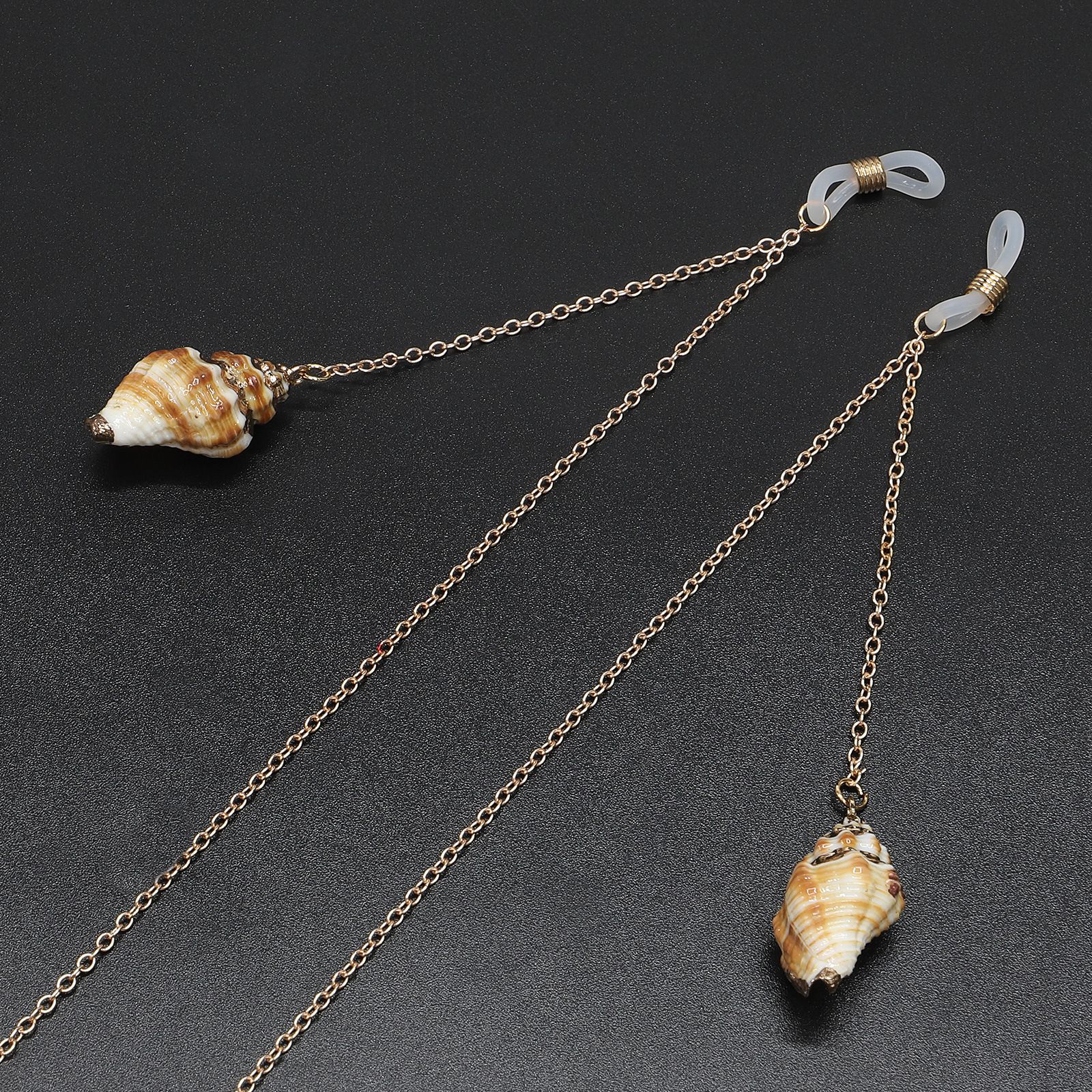 Металлическая нескользящая цепочка золотого цвета, с натуральными ракушками, для очков и масок GL767
