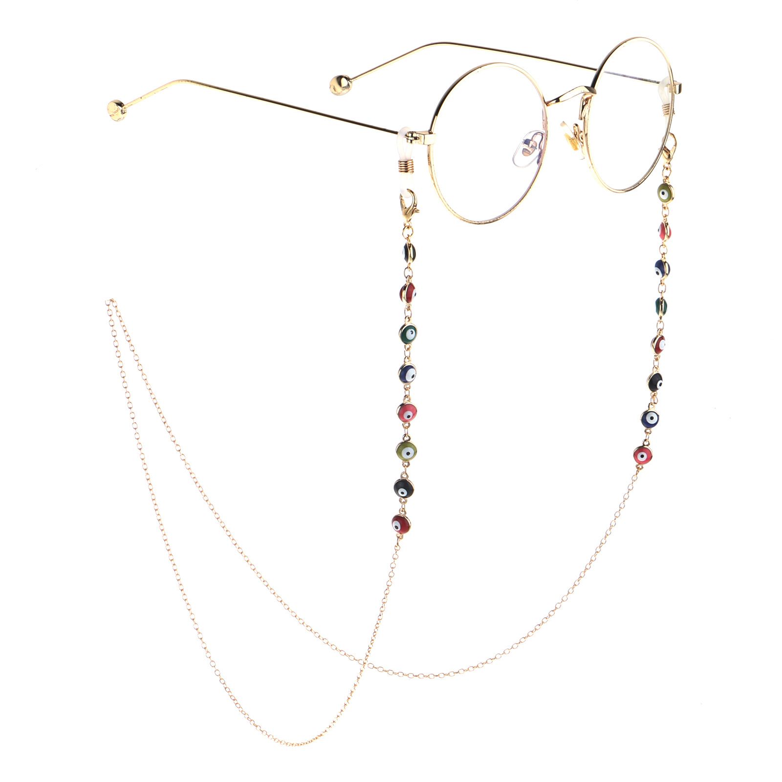 Металлическая нескользящая цепочка золотого цвета, с цветными глазами, для очков и масок GL802