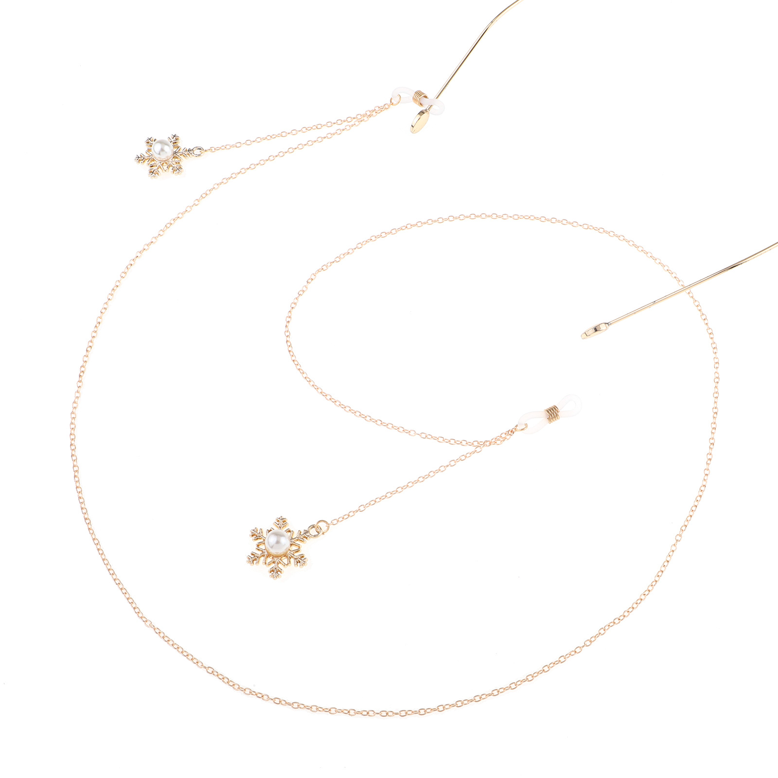 Металлическая нескользящая цепочка золотого цвета, с подвеской снежинка с жемчугом, для очков и масок GL826