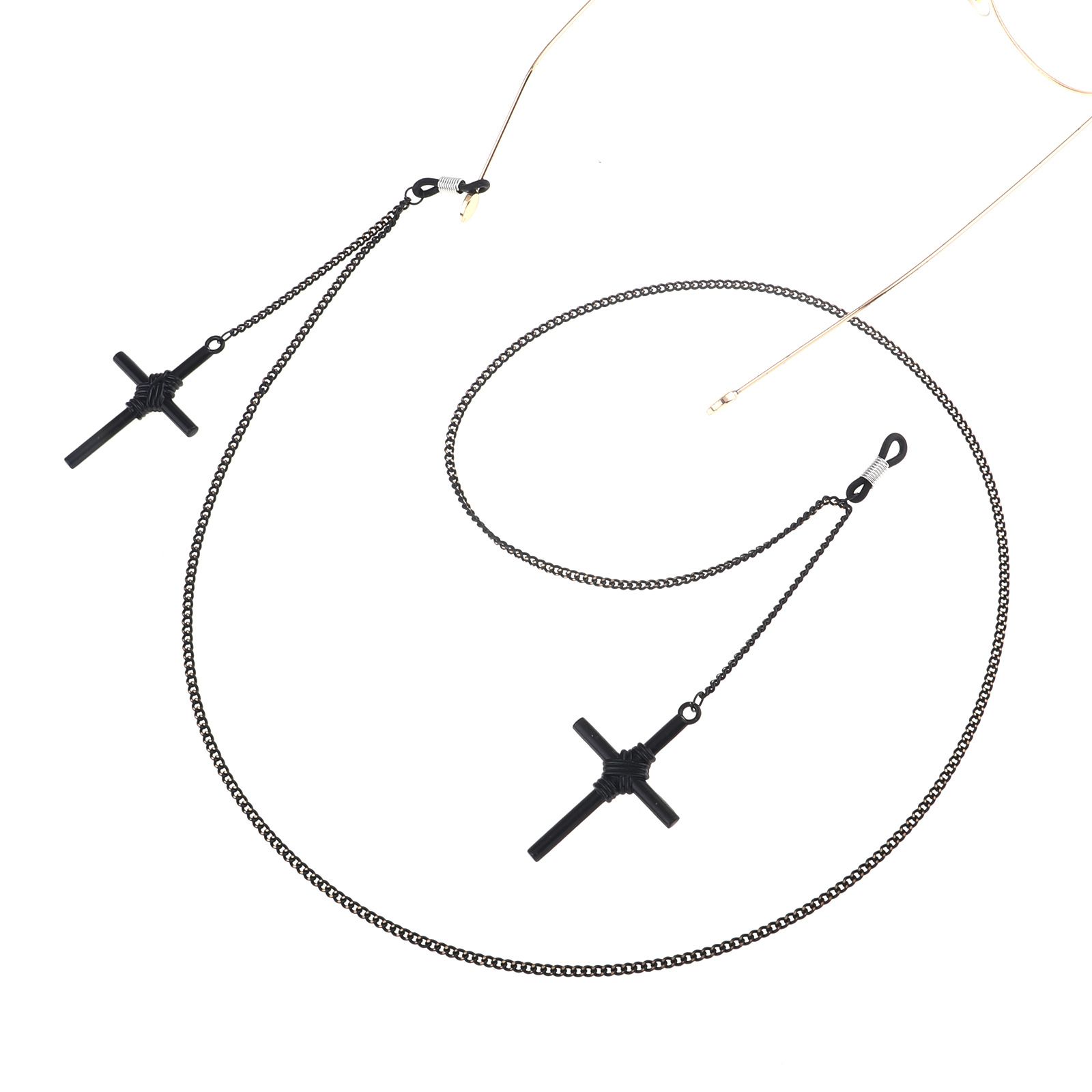 Металлическая нескользящая цепочка черного цвета, с подвеской черный крест, для очков и масок GL836