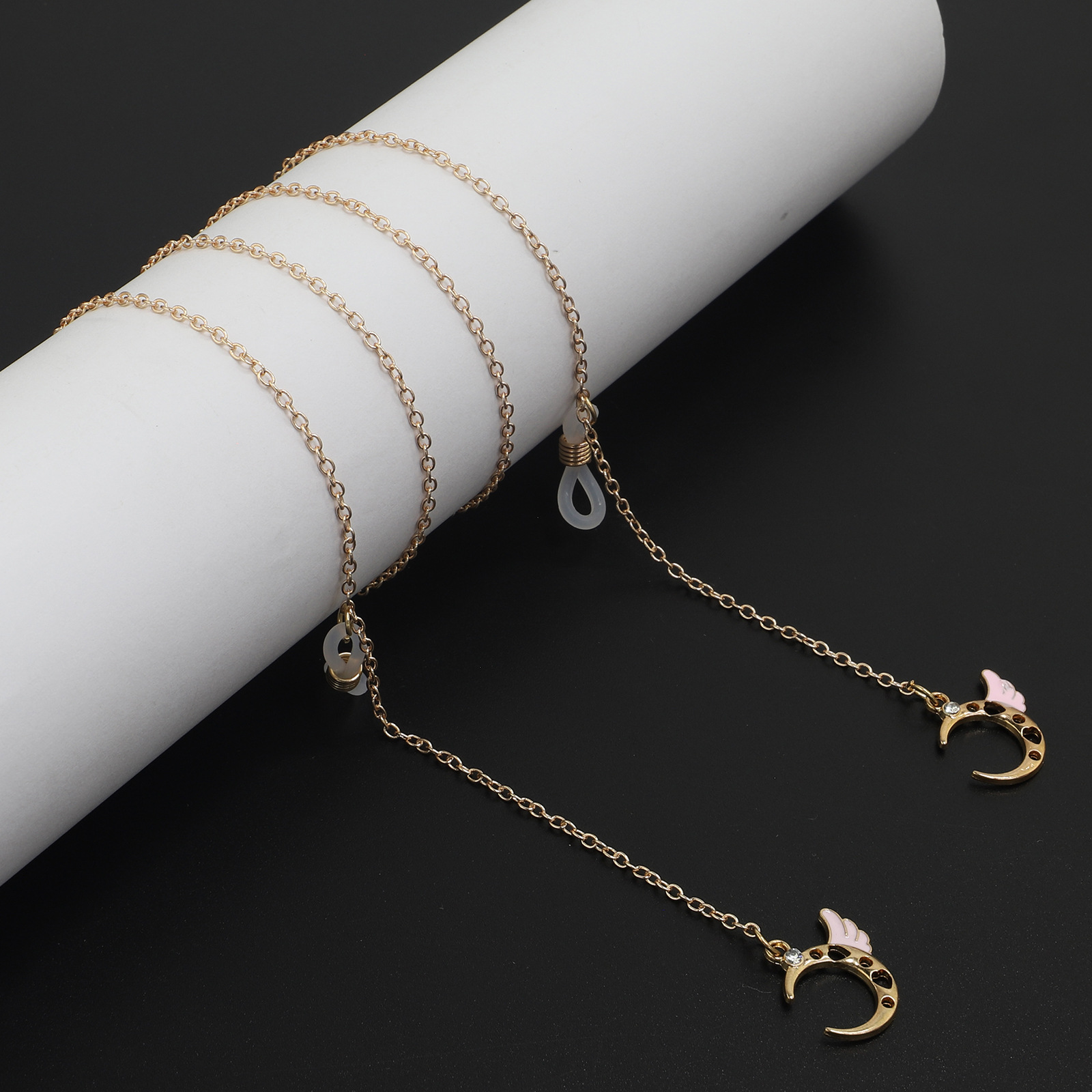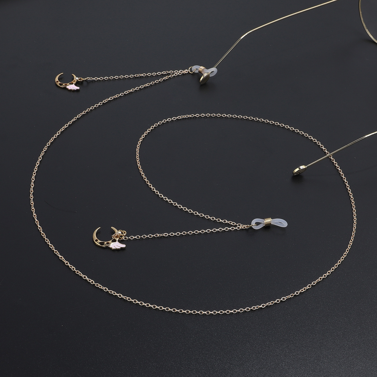 Металлическая нескользящая цепочка золотого цвета, с подвеской в виде луны и ангела, для очков и масок GL863
