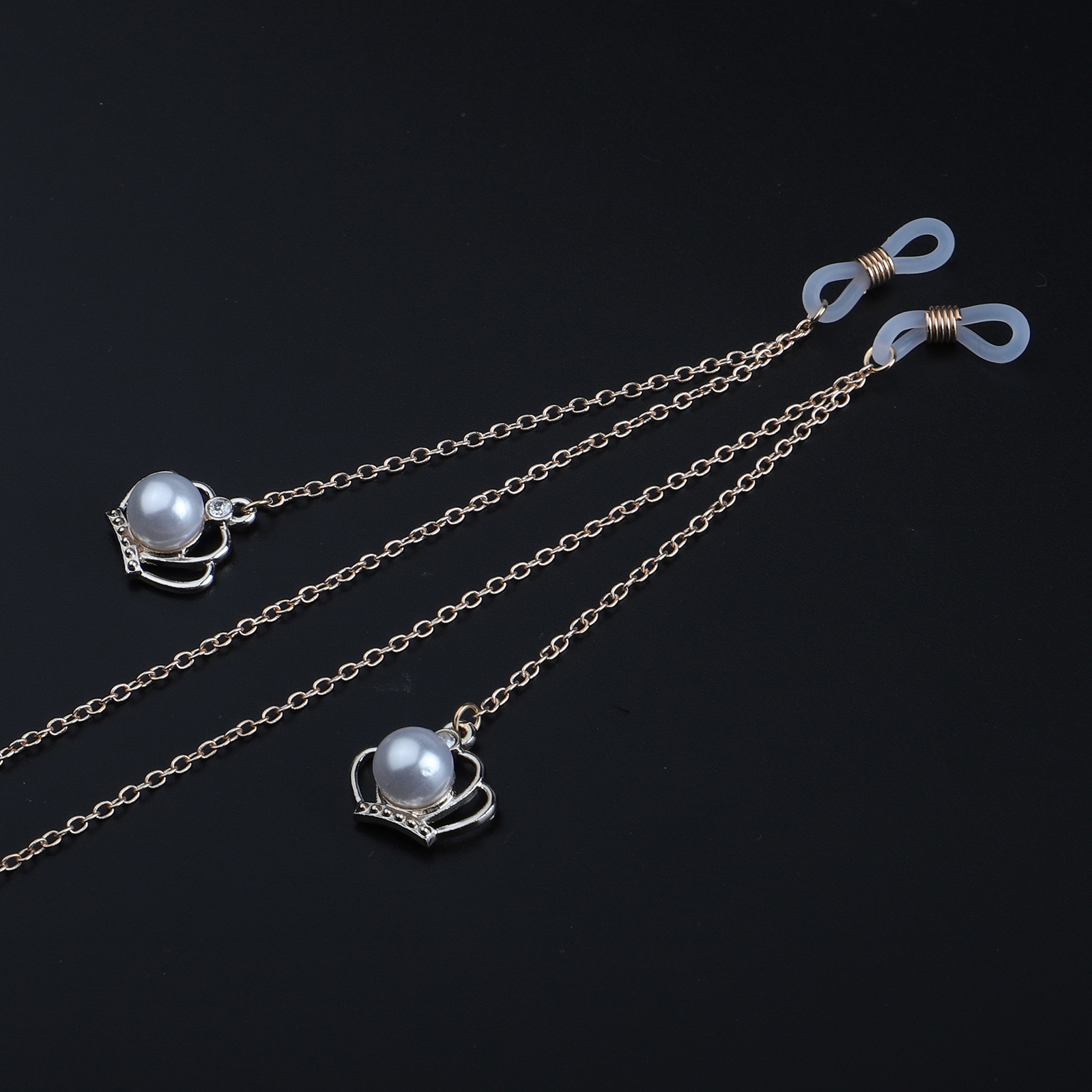 Металлическая нескользящая цепочка, с подвеской корона с жемчугом, для очков и масок GL880