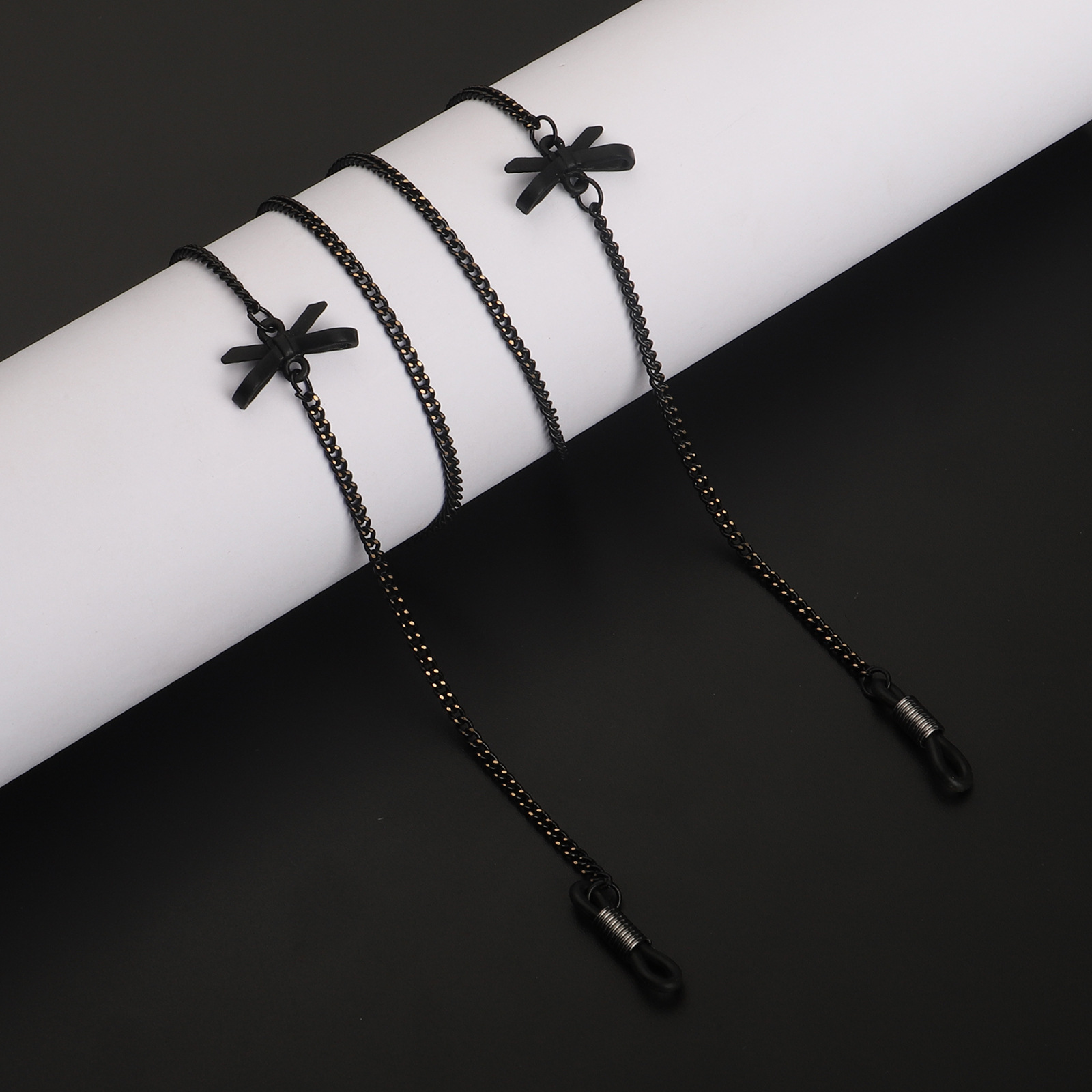 Металлическая нескользящая цепочка черного цвета, с бантом, для очков и масок GL888