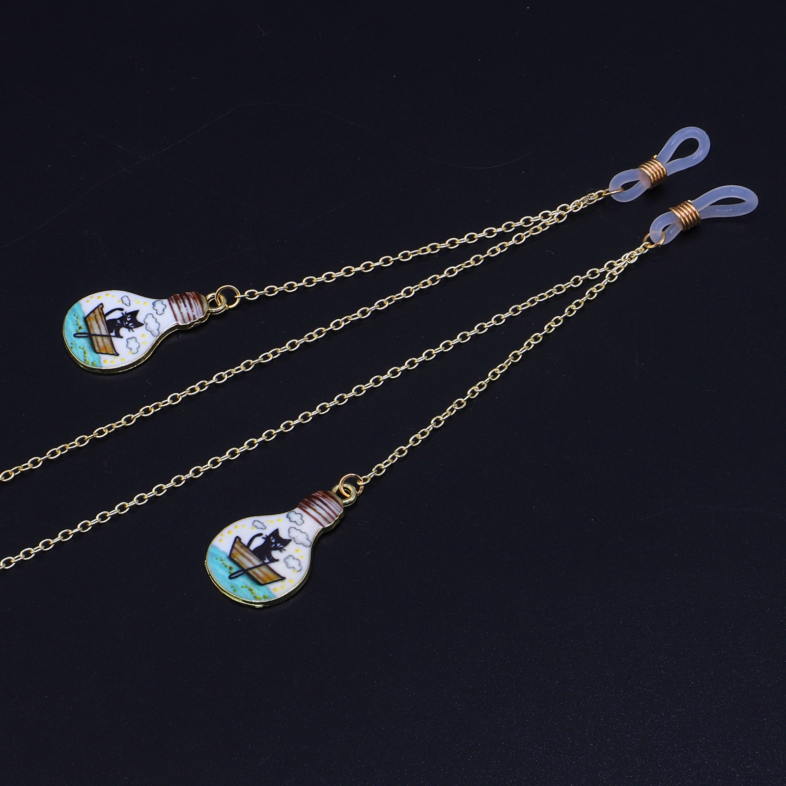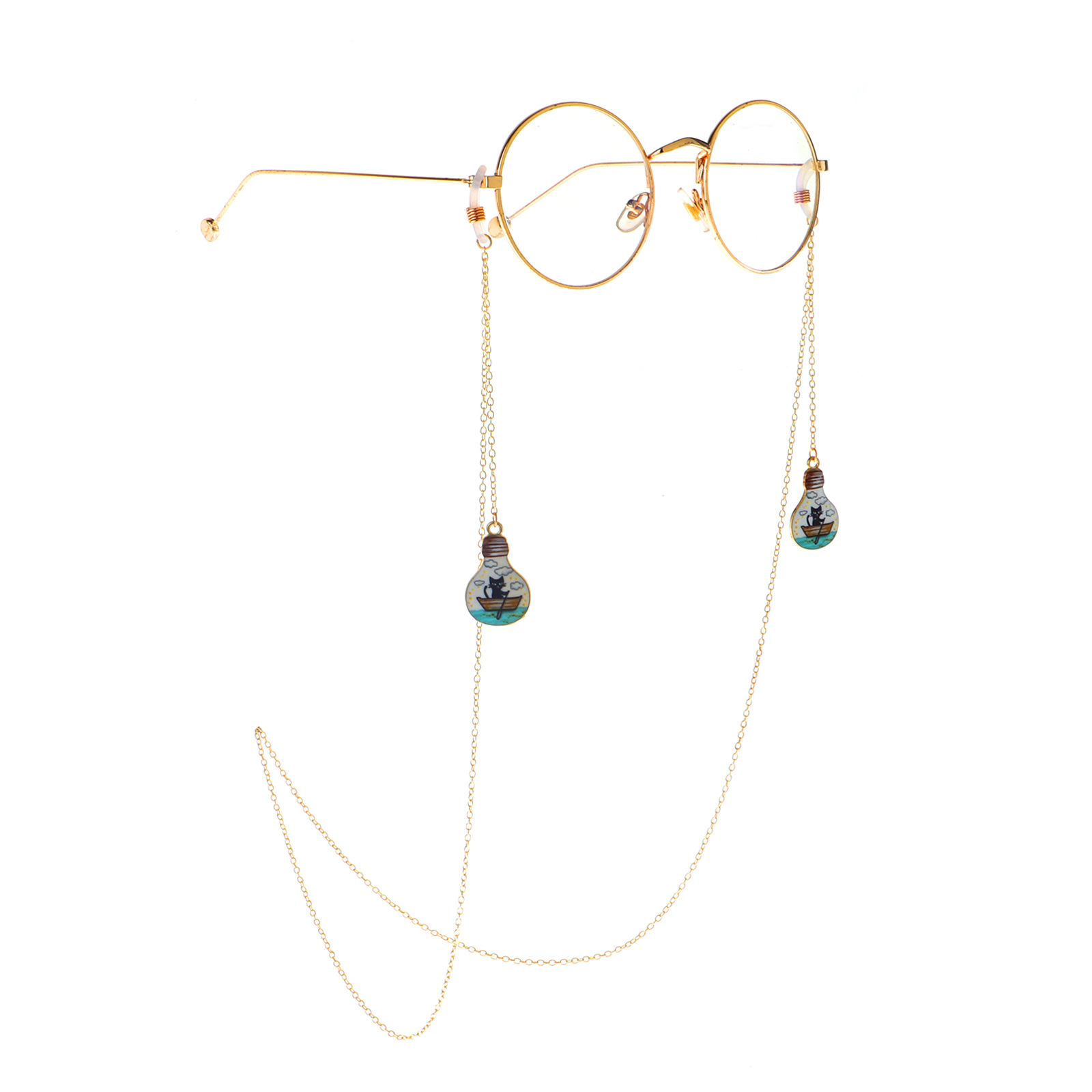 Металлическая нескользящая цепочка золотого цвета, с подвеской в виде лампочки с картинкой, для очков и масок GL912