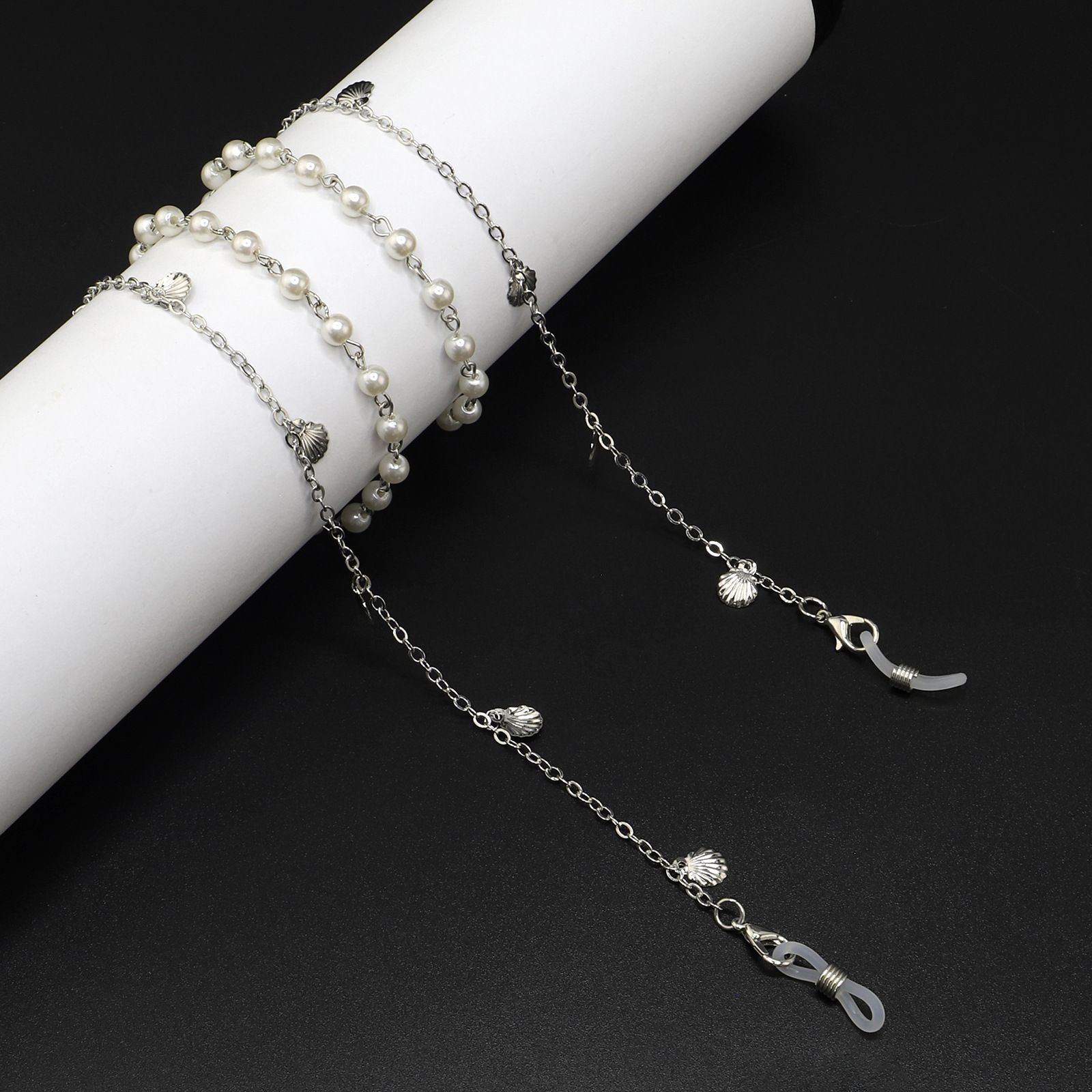Металлическая нескользящая цепочка серебряного цвета, с ракушками и жемчугом, для очков и масок GL920