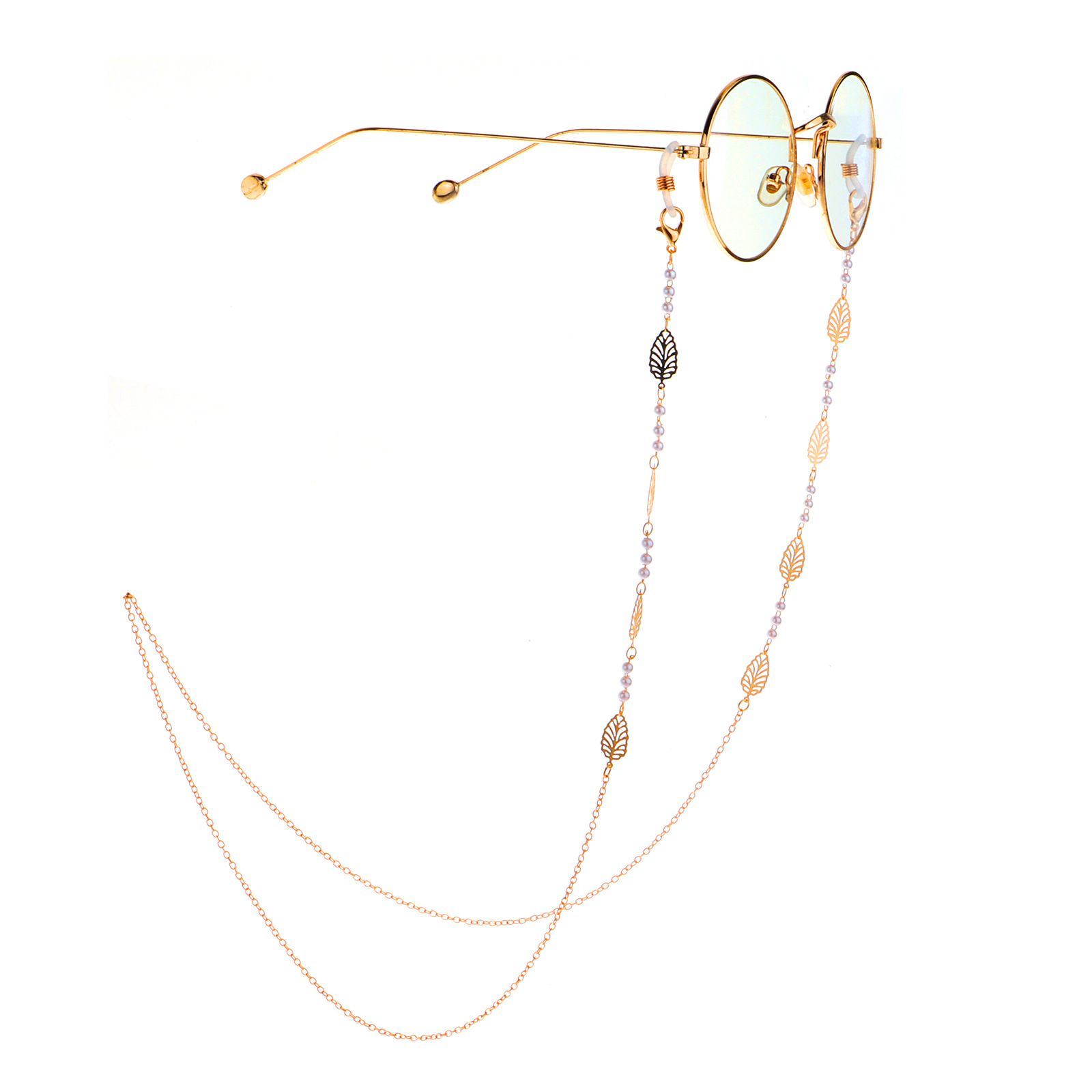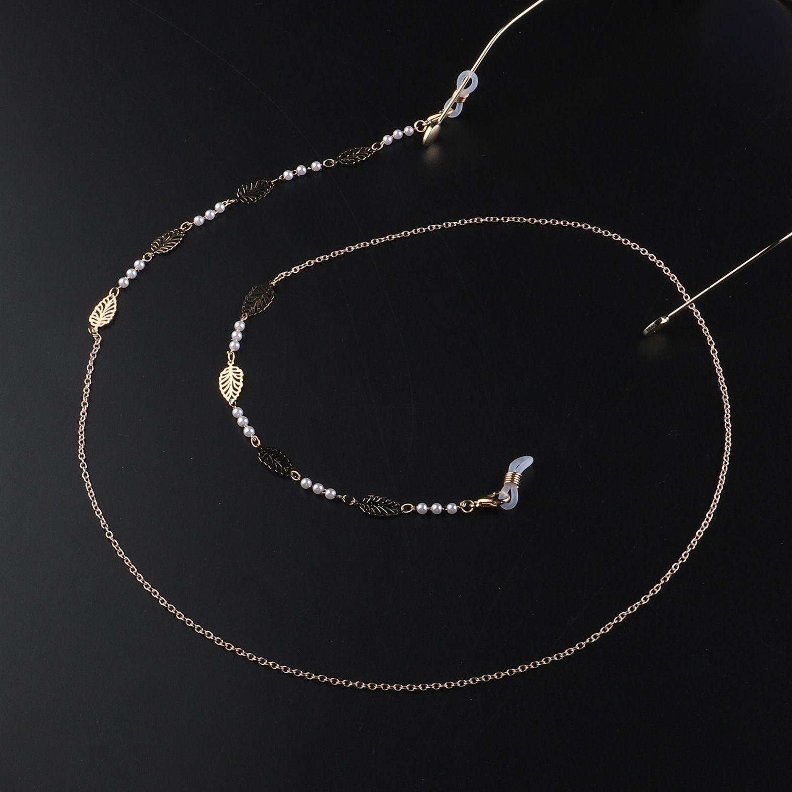 Металлическая нескользящая цепочка золотого цвета, с полыми листьями и жемчужугом, для очков и масок GL948