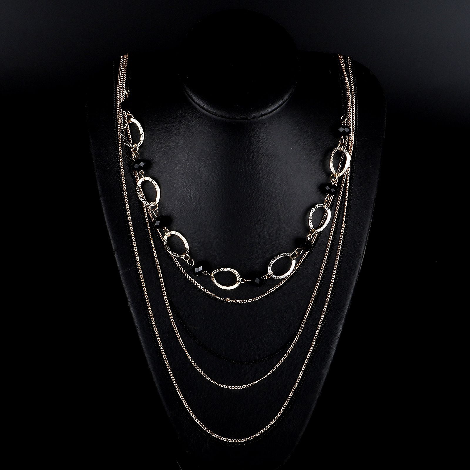 Металлическая нескользящая цепочка золотая-черная многослойная, с кристаллом, для очков и свитера GL963