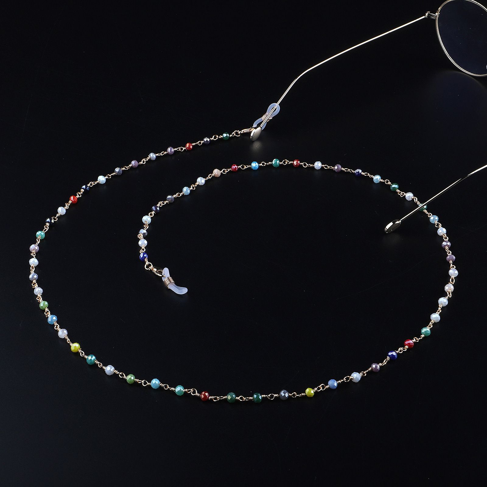 Металлическая нескользящая цепочка золотого цвета, с цветными бусинами, для очков и масок GL965