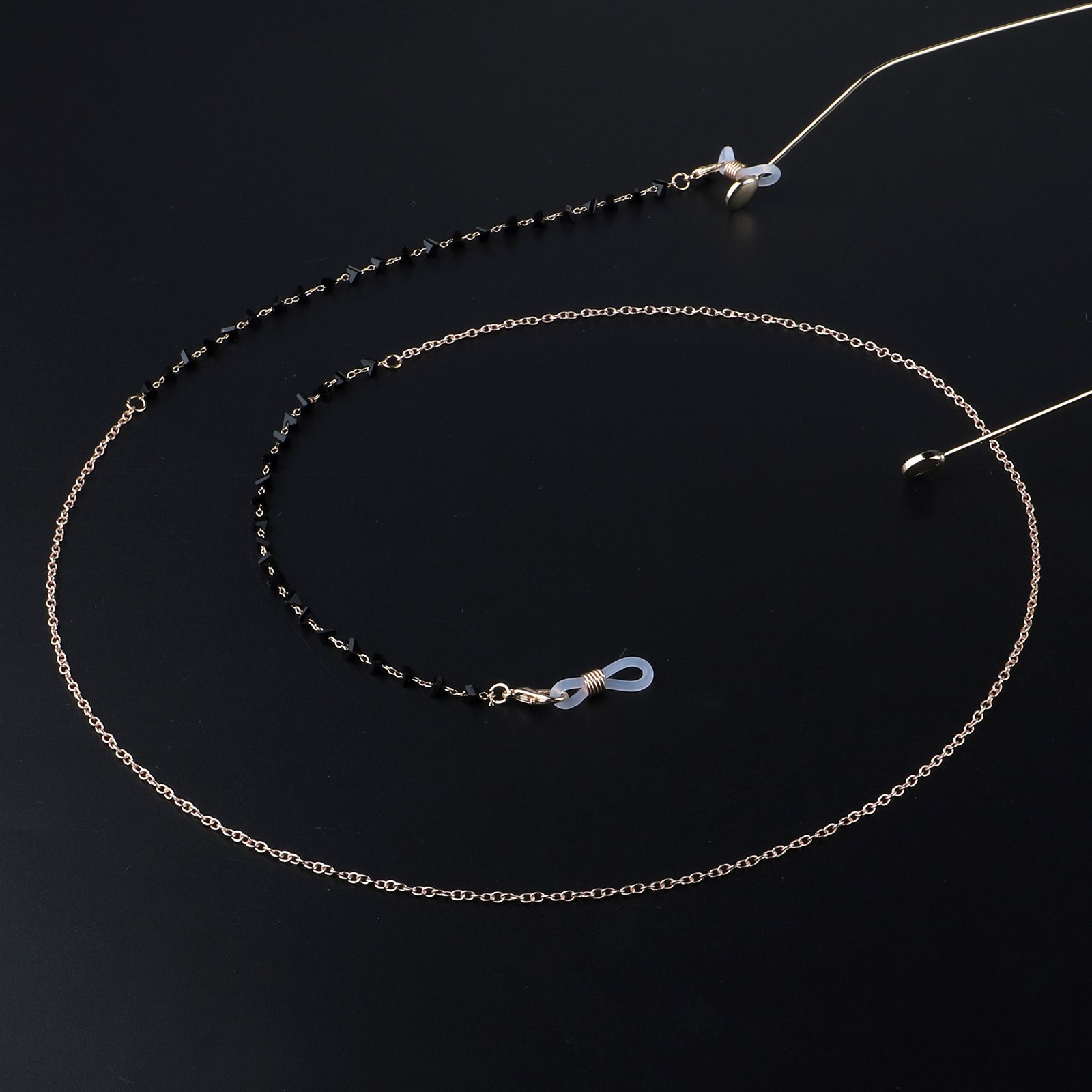 Металлическая нескользящая цепочка золотого цвета,с черными треугольными кристаллами, для очков и масок GL976