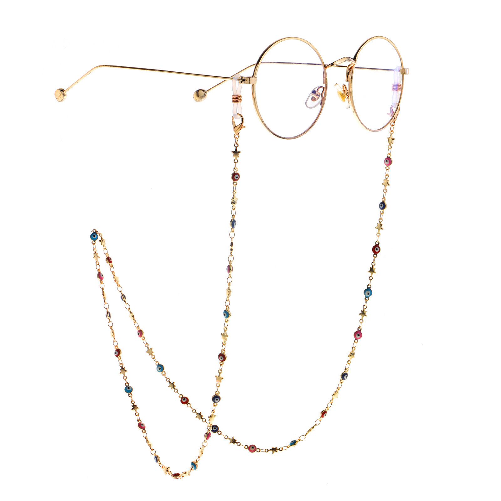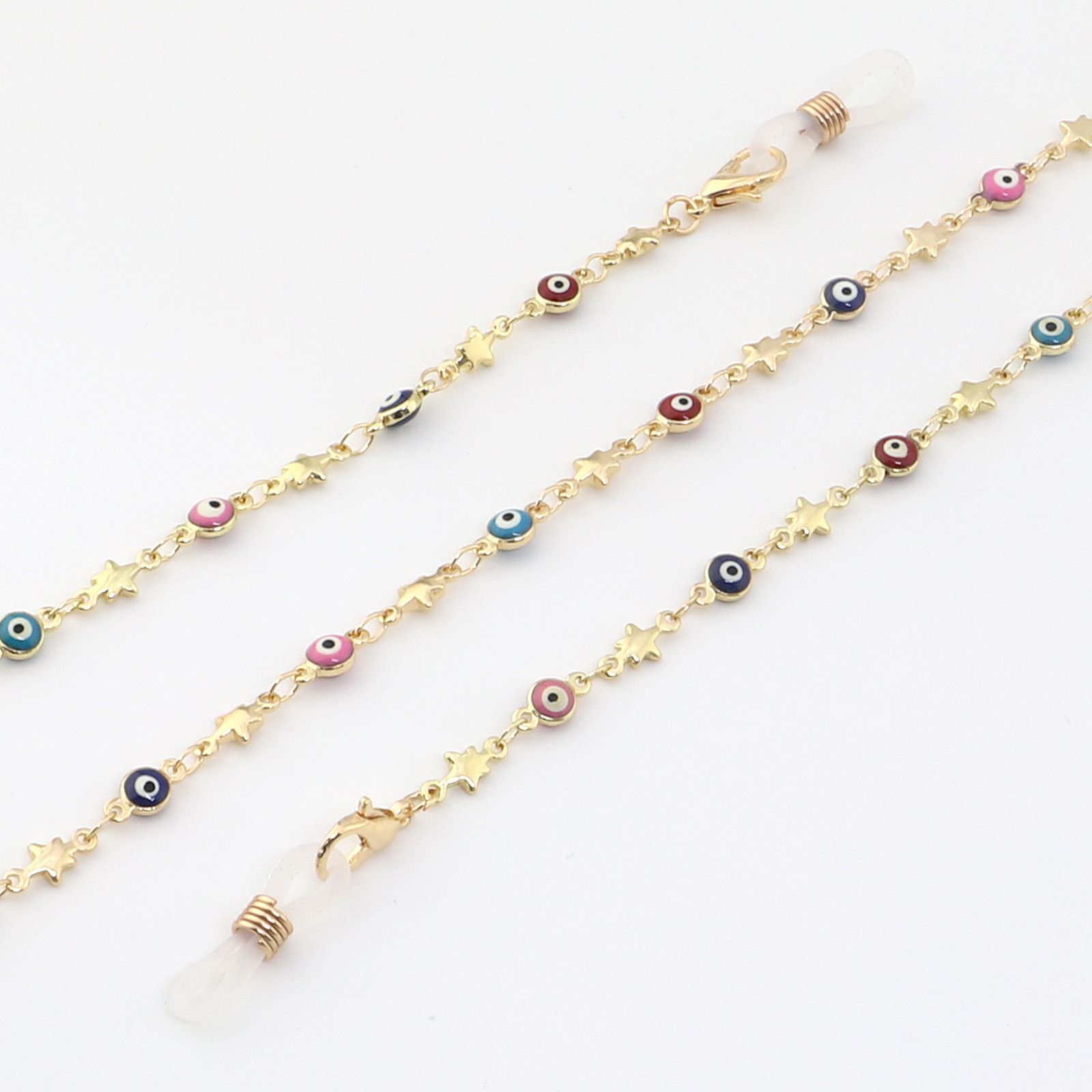 Металлическая нескользящая цепочка золотого цвета, с цветными глазами и звездами, для очков и масок GL984