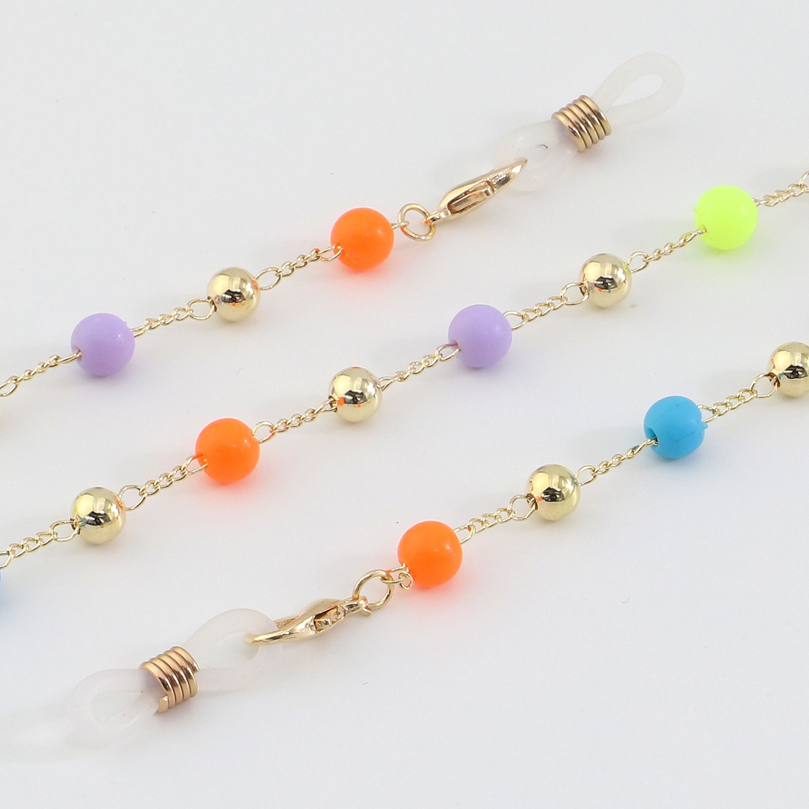 Металлическая нескользящая цепочка золотого цвета, с бусинами золотого и желе цвета, для очков и свитера GL987