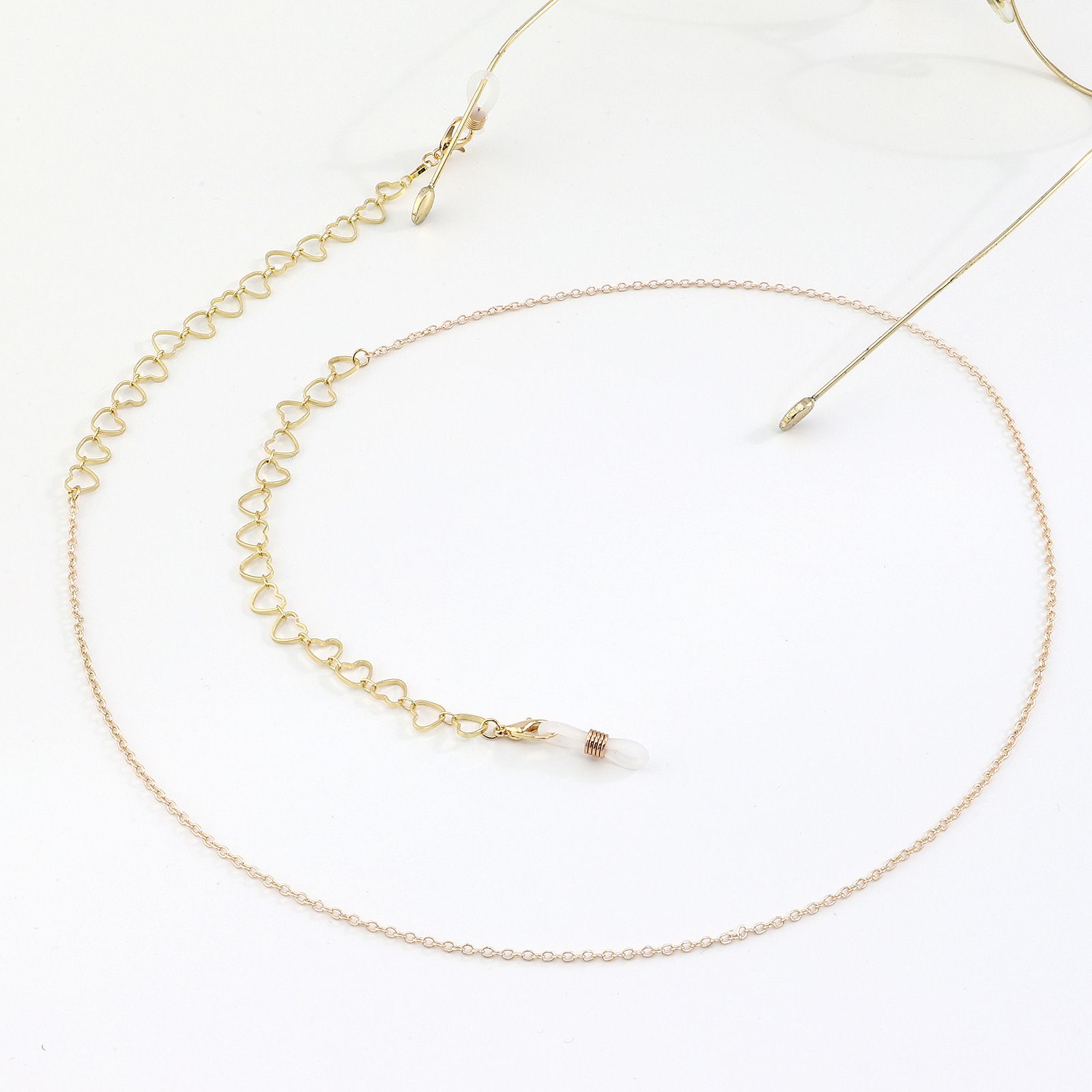 Металлическая нескользящая цепочка золотого цвета, в форме полых сердец, для очков и масок GL999