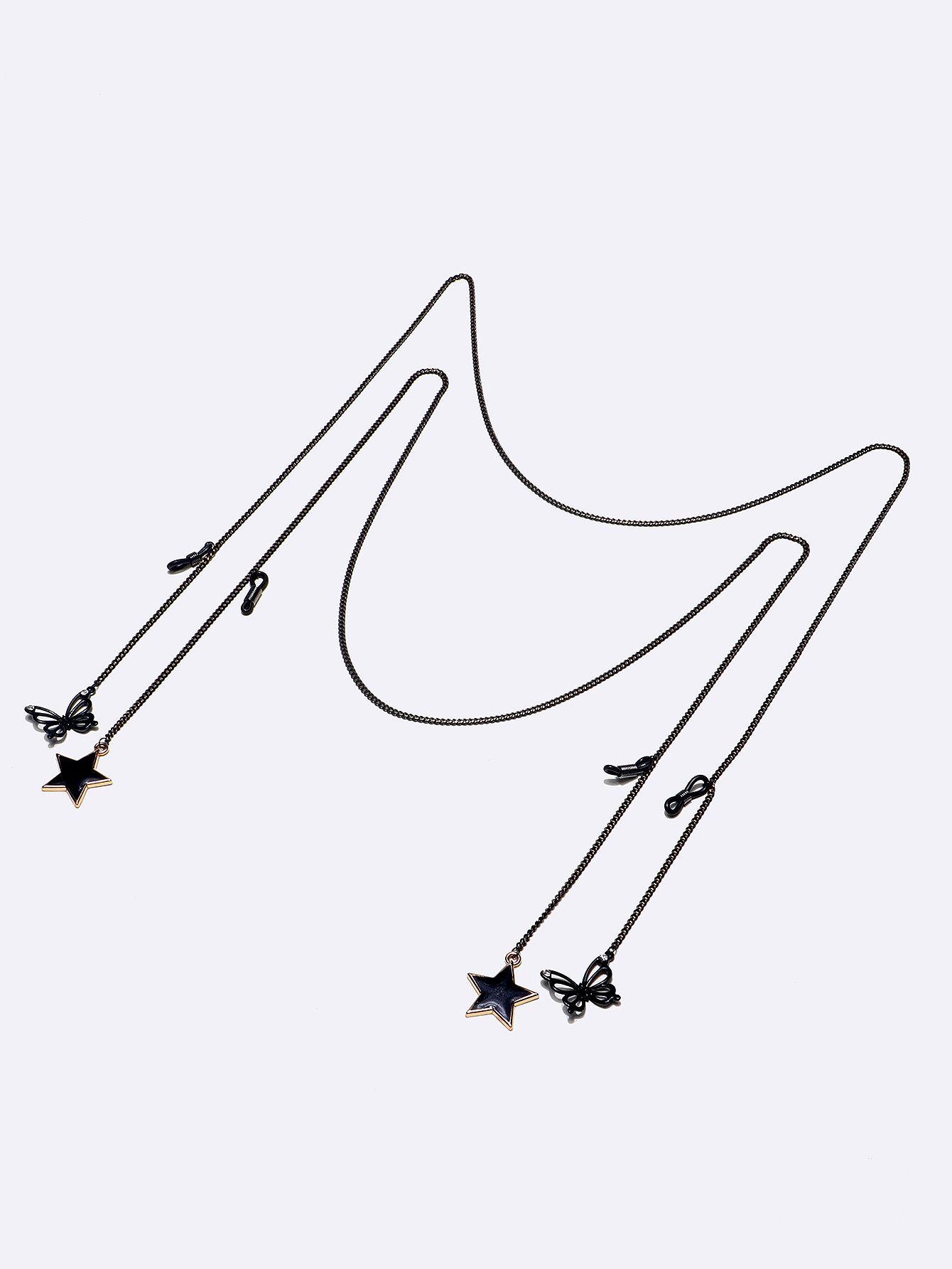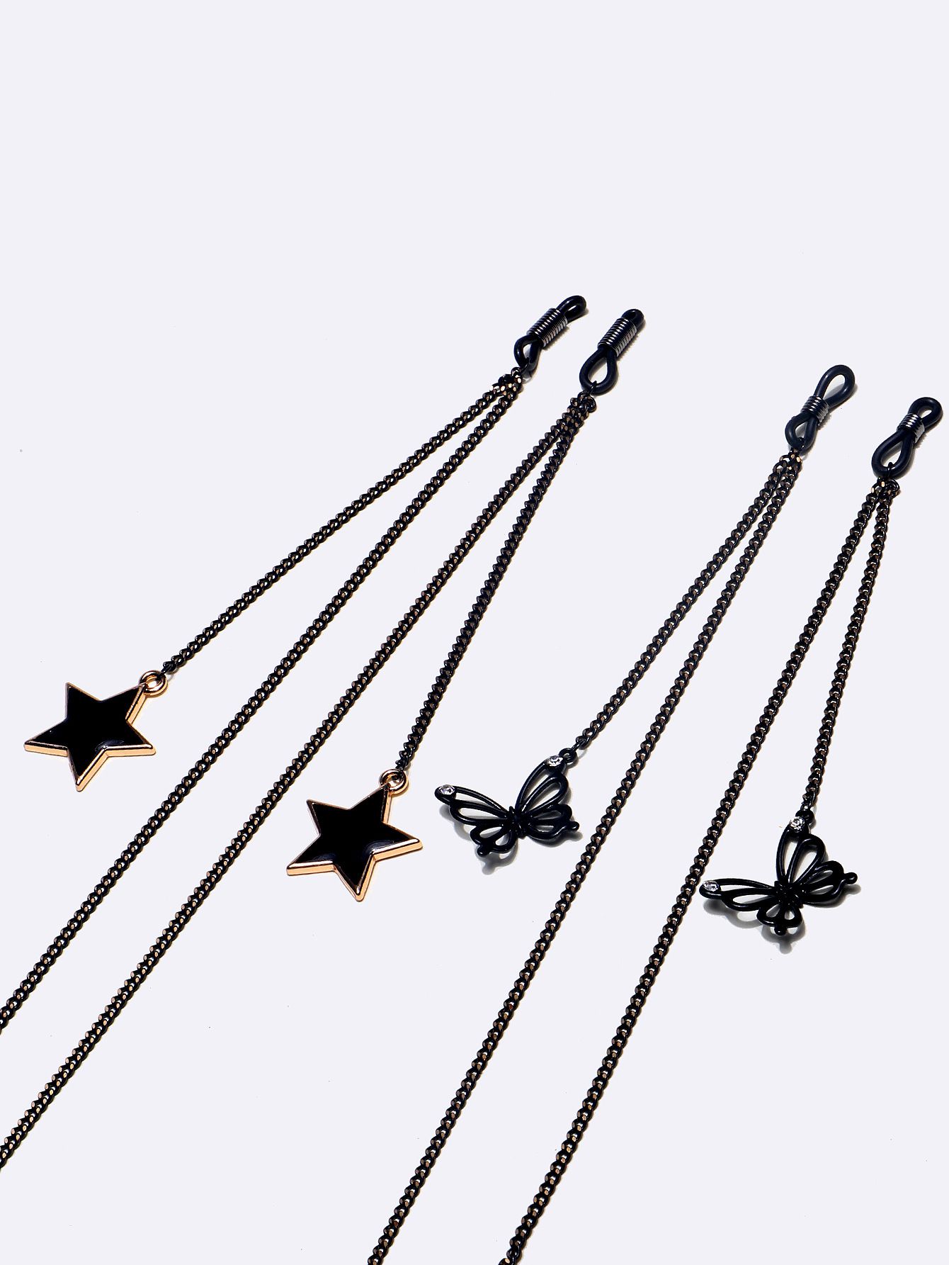 Металлическая нескользящая цепочка черная, комплект из 2-х цепочек с черной звездой и бабочкой, для очков и масок GM003