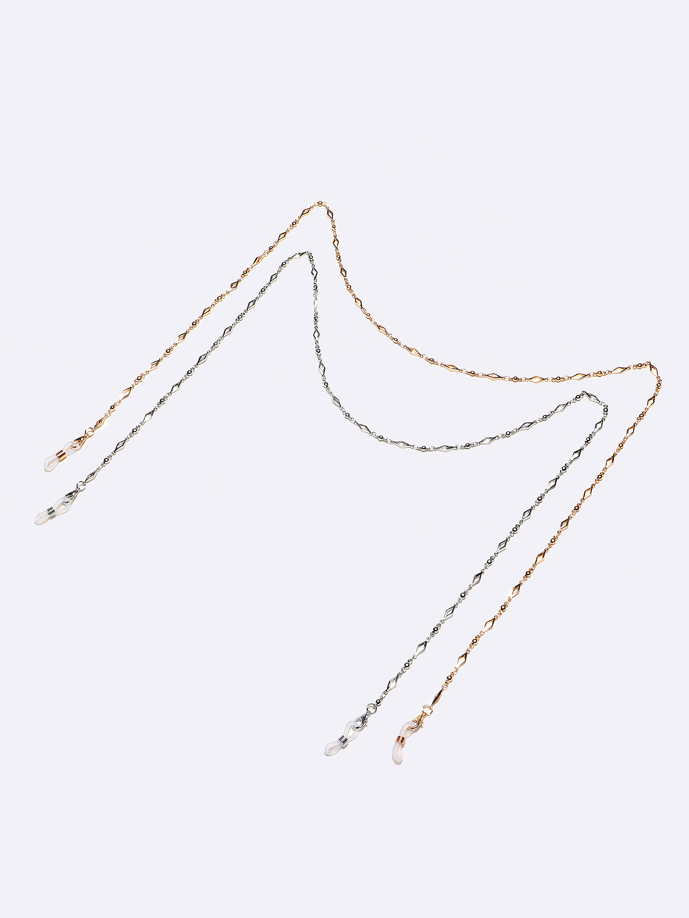 Набор из двух золотых и серебряных цепочек для очков с полыми ромбами GM063
